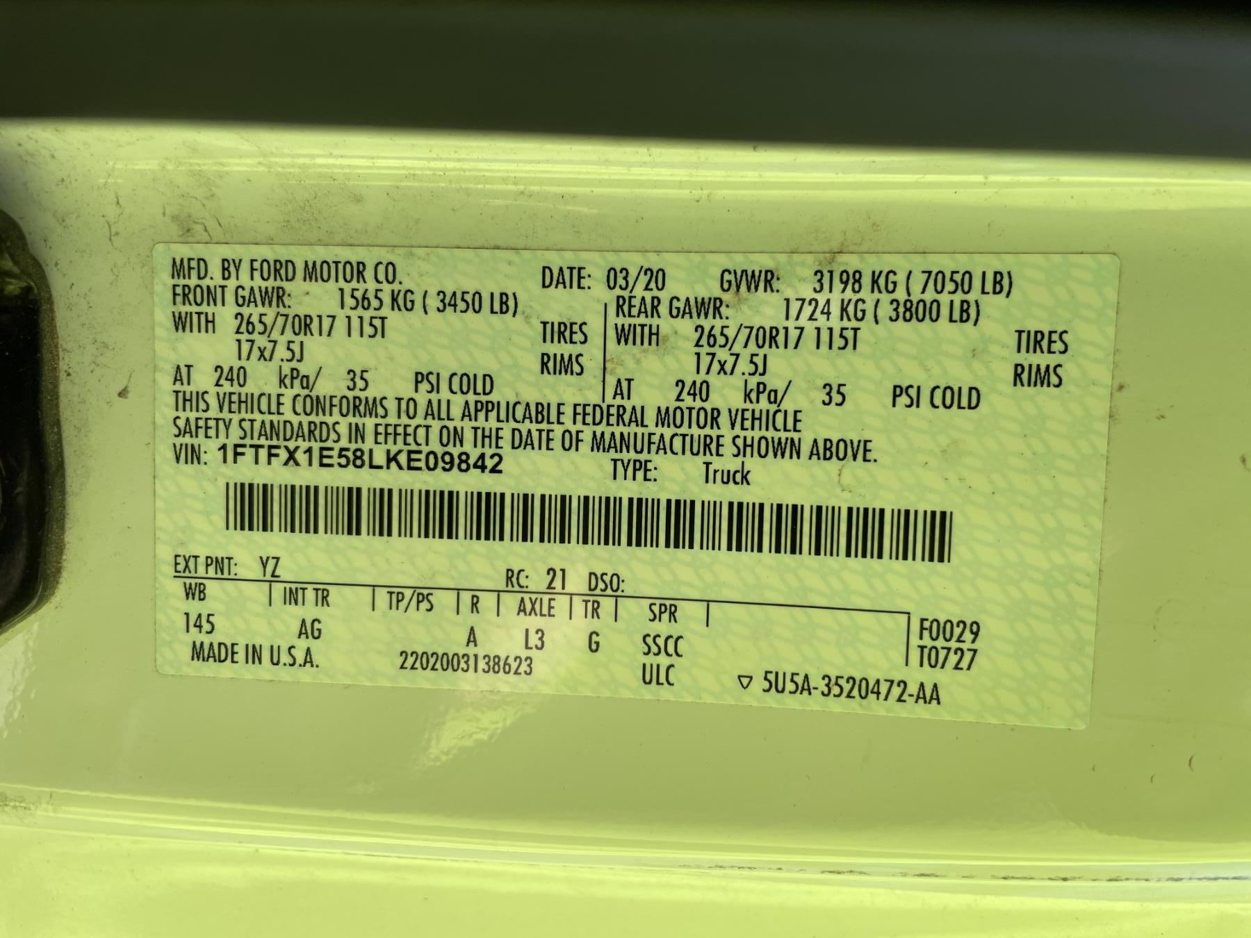 Vehicle ID Number: 1FTFX1E58LKE09842