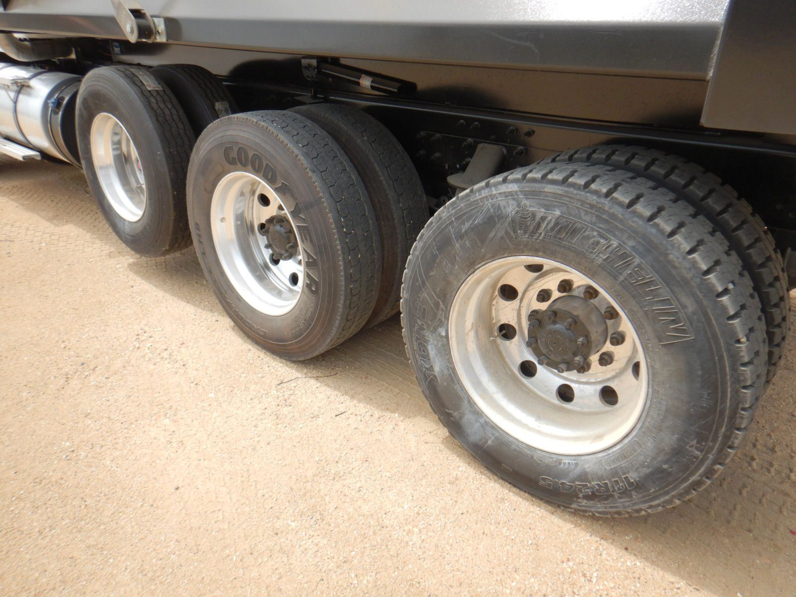 Tri Axle, ext cab, 500 HP Cummins X15 engine, Allison 4500 RDS A/T, 46K rears, 18,740 lb. front, 16’ Hard Ox body, 11R24.5 rear tires, 385/65R22.5 front tires