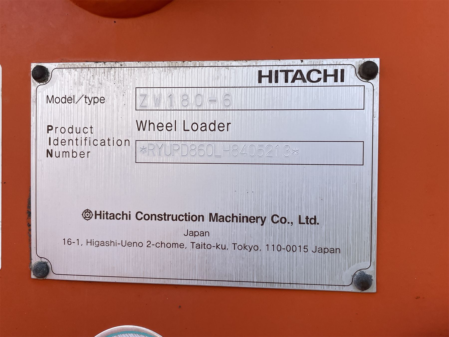 2021 HITACHI ZW180-6 Wheel Loader