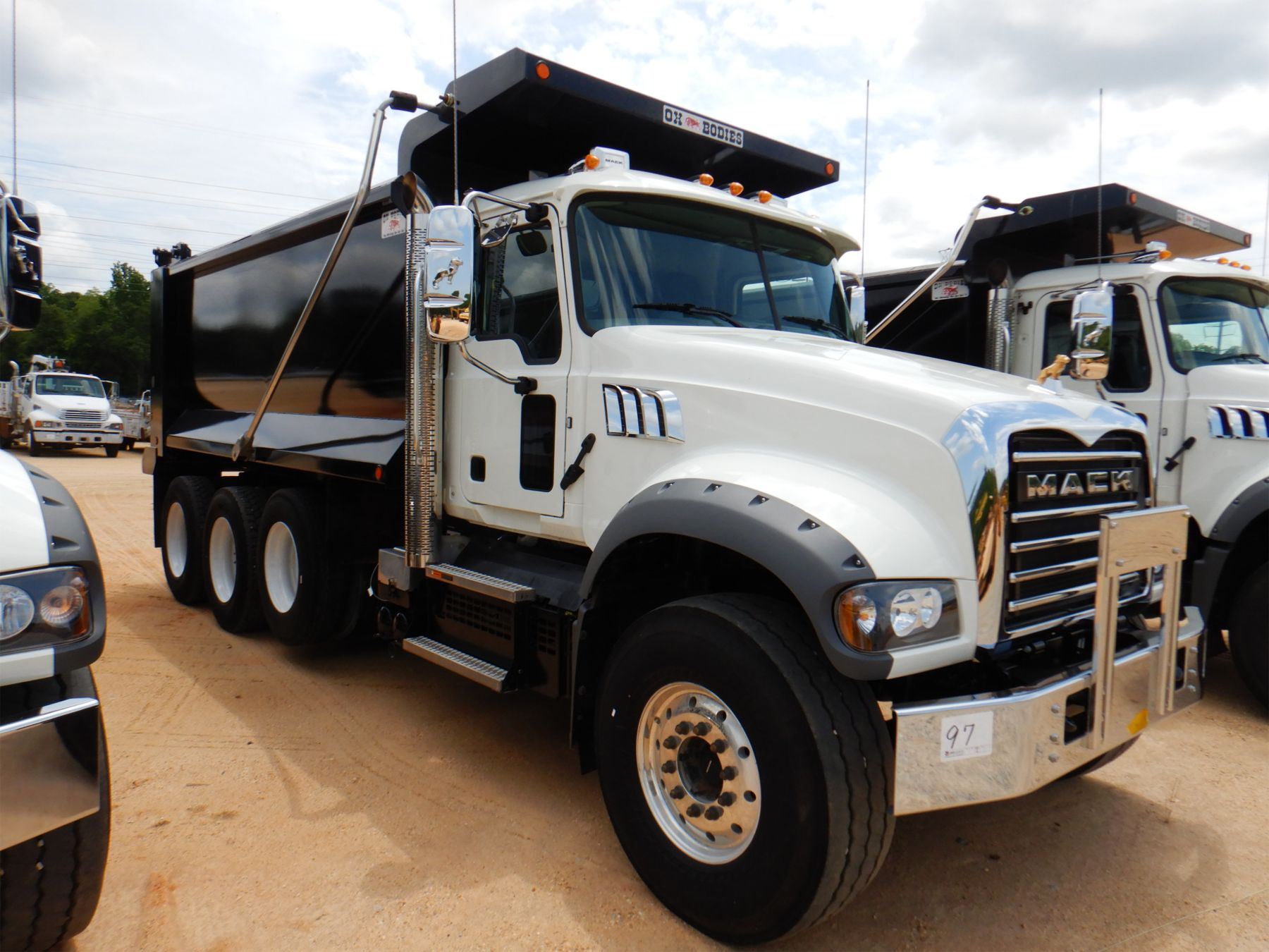 Tri Axle, 455 HP Mack MP8 engine, Mack mDrive A/T, 44K rears, 20K front, 16' Hard Ox body, 11R24.5 rear tires, 425/65R22.5 front tires