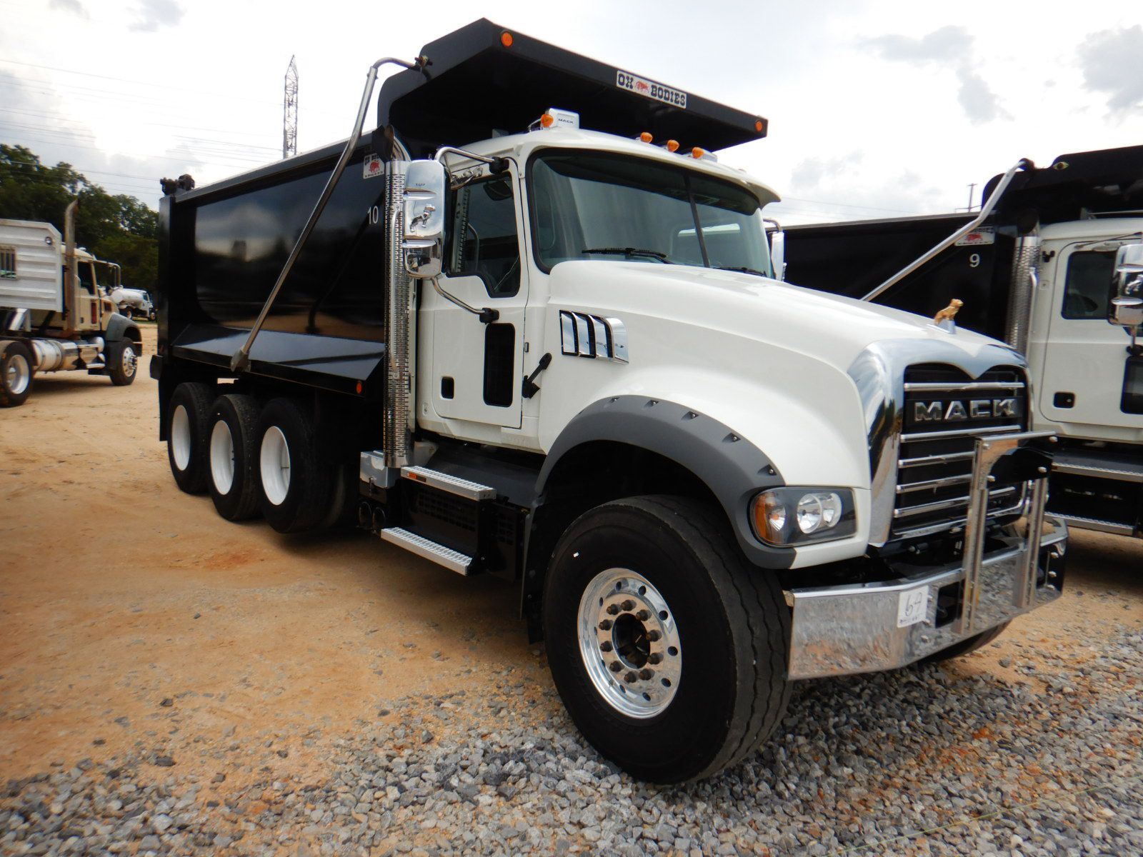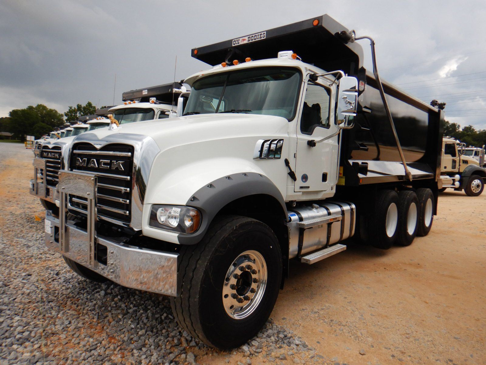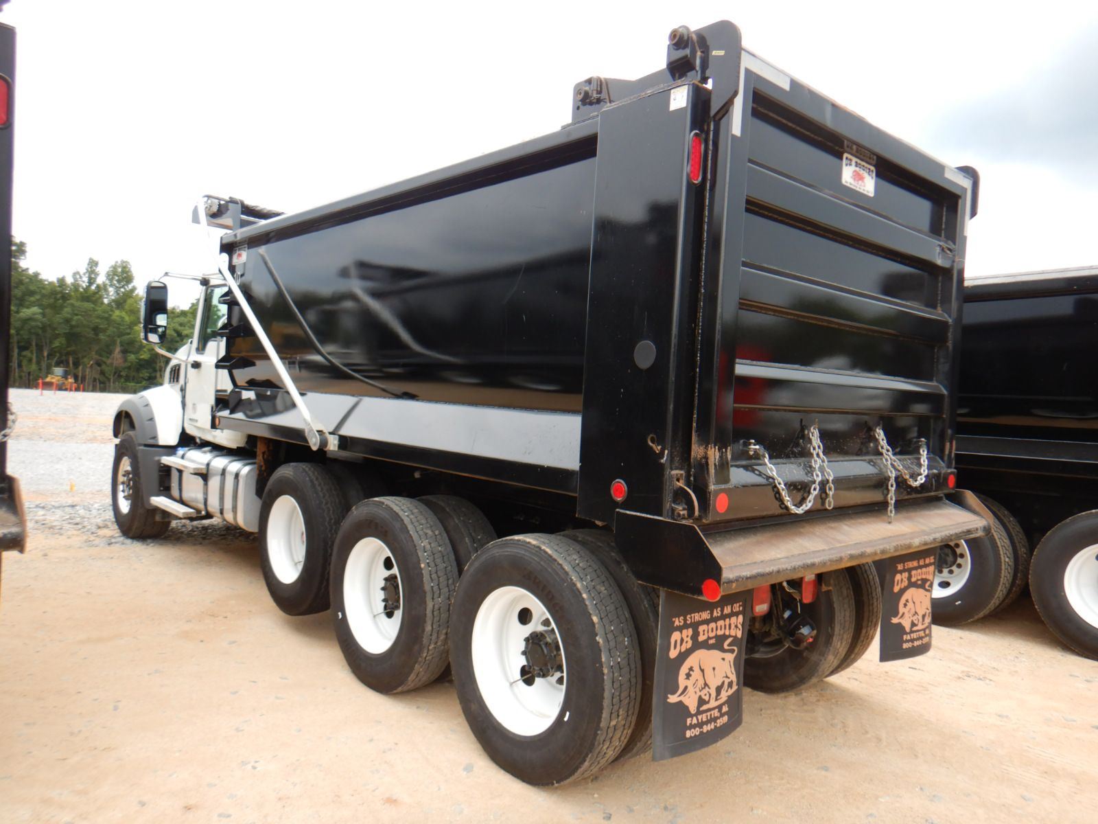 Tri Axle, 455 HP Mack MP8 engine, Mack mDrive auto shift trans, 44K rears, 20K front, 16' Hard Ox body, 11R24.5 rear tires, 425/65R22.5 front tires