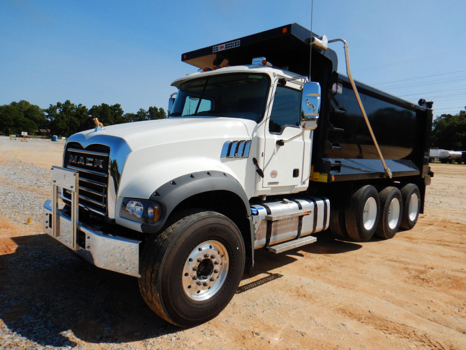 Tri Axle, 455 HP Mack MP8 engine, Mack mDrive auto shift trans, 44K rears, 20K front, 16' Hard Ox body, 11R24.5 rear tires, 425/65R22.5 front tires