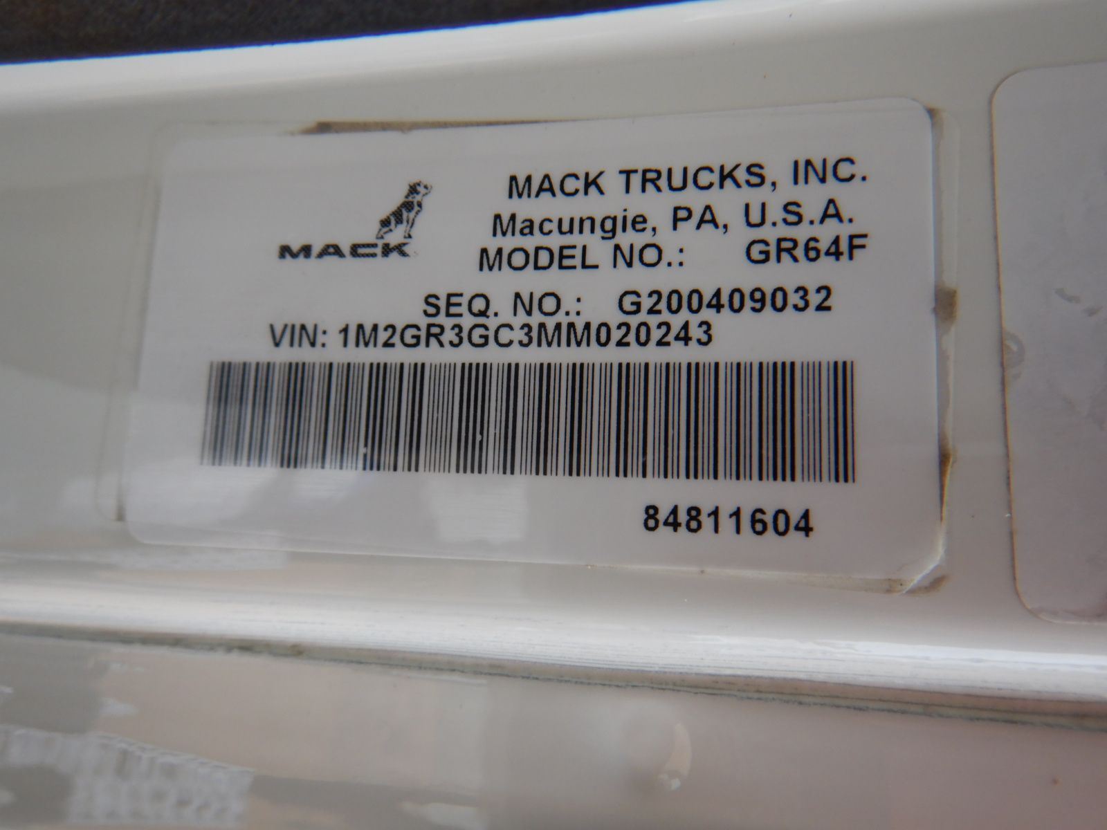 Vehicle ID Number: 1M2GR3GC3MM020243