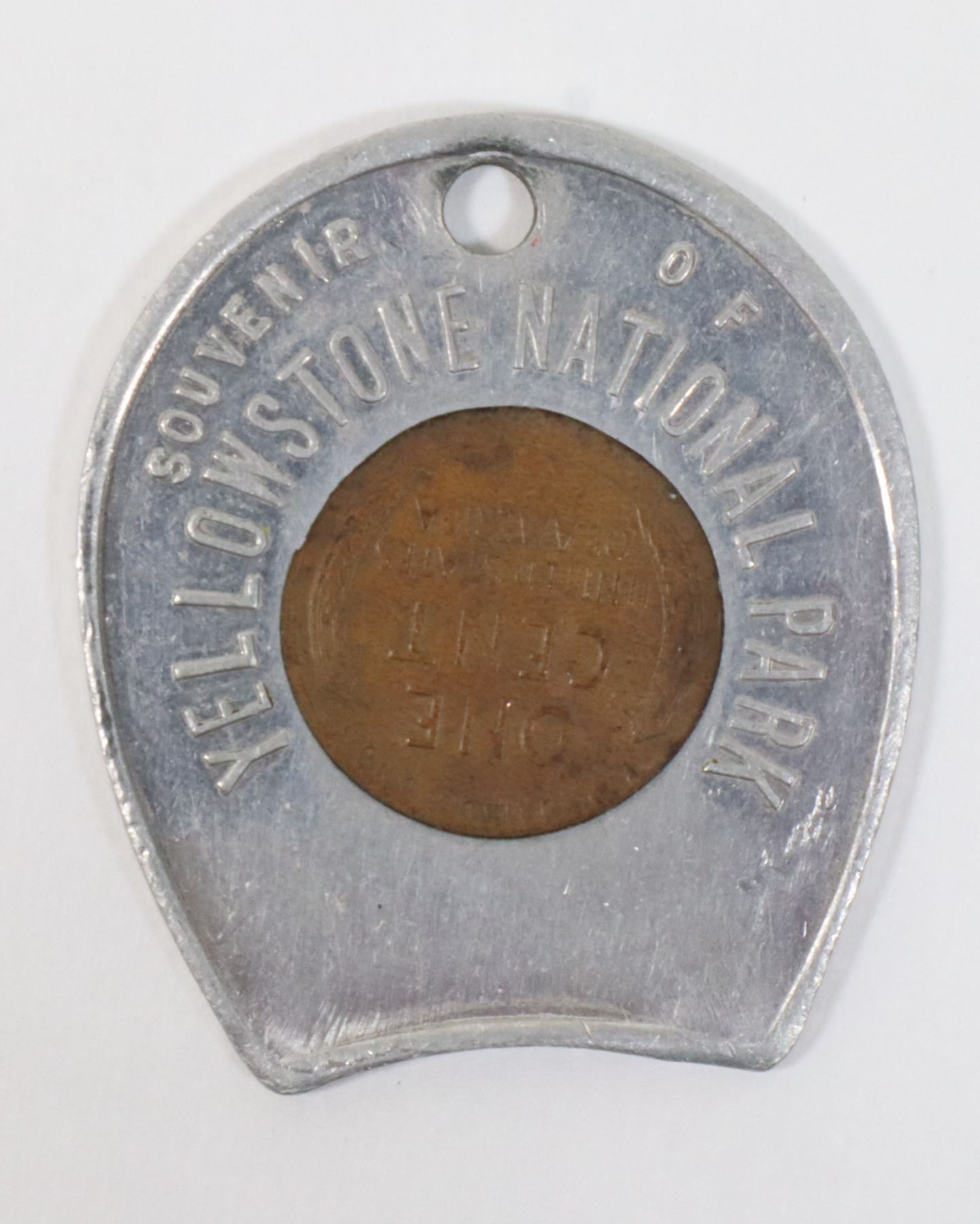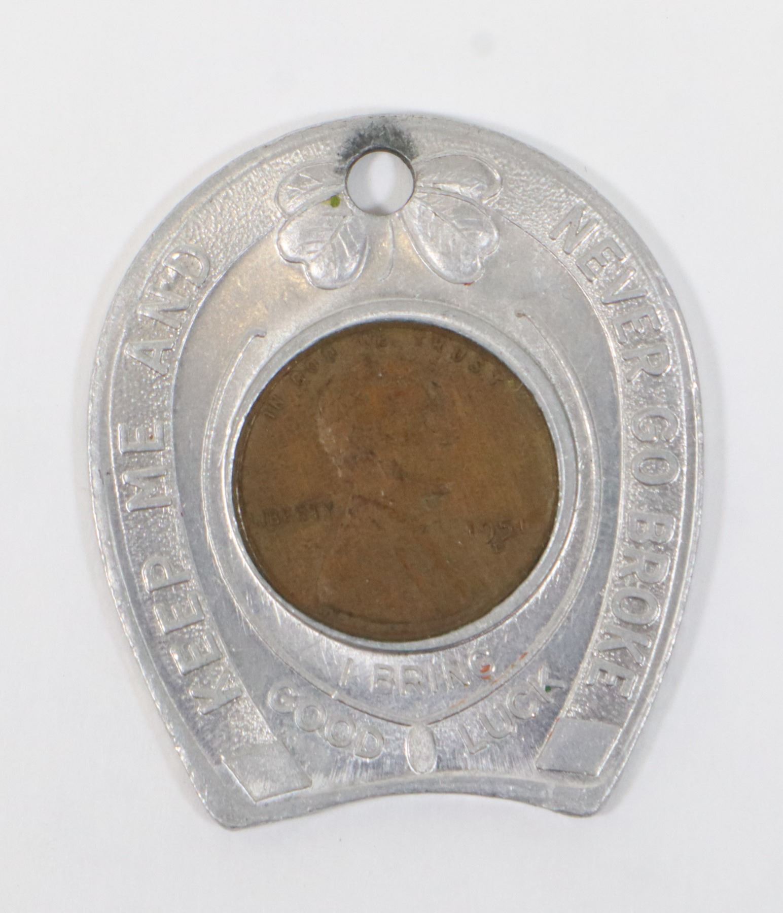 1953 UNITED STATES PENNY IN GOOD LUCK HORSESHOE DESIGN TOKEN COIN