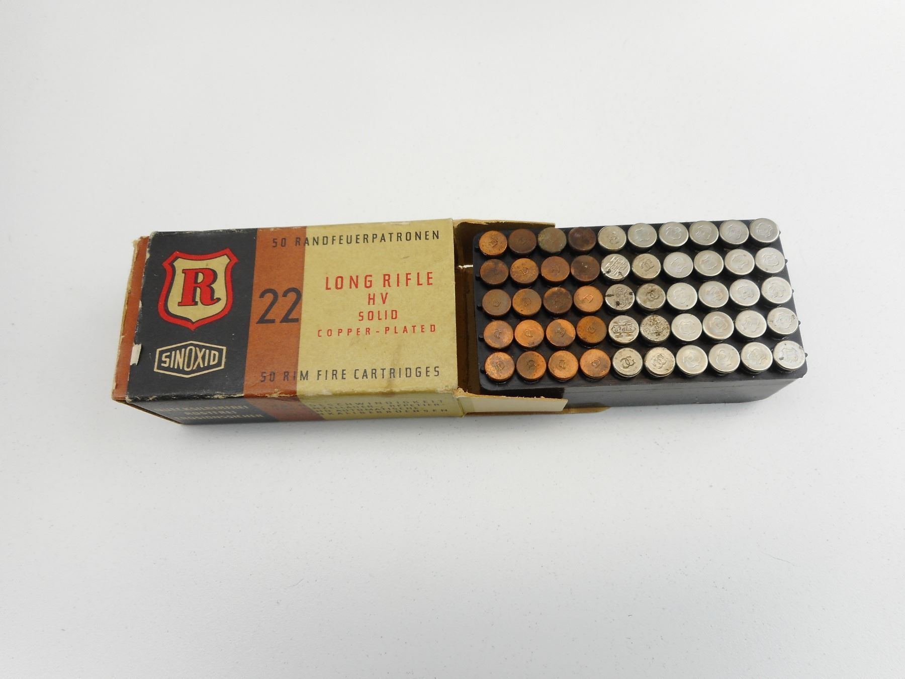 .22 LR AMMO , 50 RNDS .22 LR AMMO IN VINTAGE SINOXID BOX