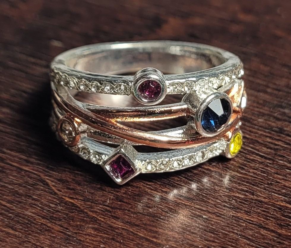DIFFERENT SHAPED AND COLORED CRYSTALS STACKER LOOK SIZE 9 RING. JEWELERY