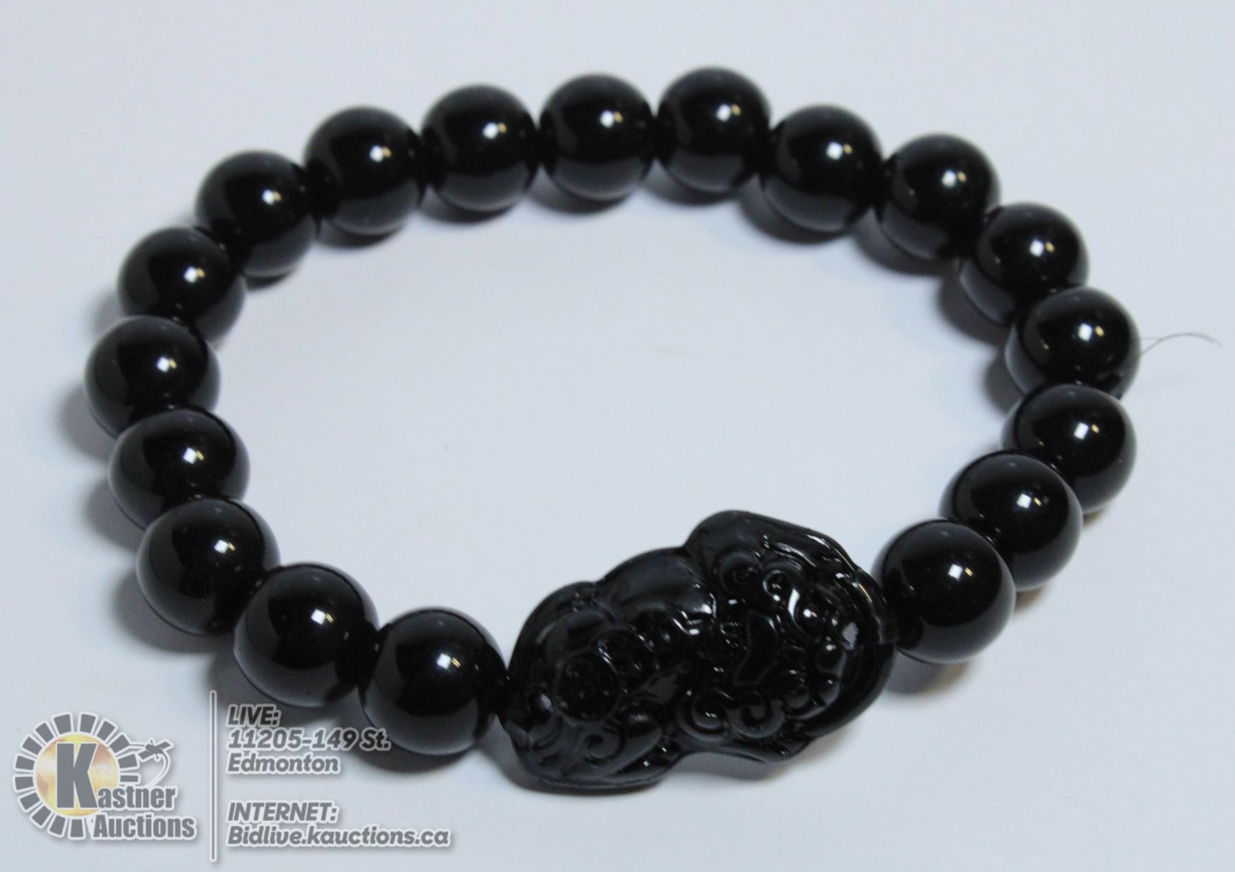 #220- NATURAL BLACK OBSIDANT BEAD BRACELETE 8 MM