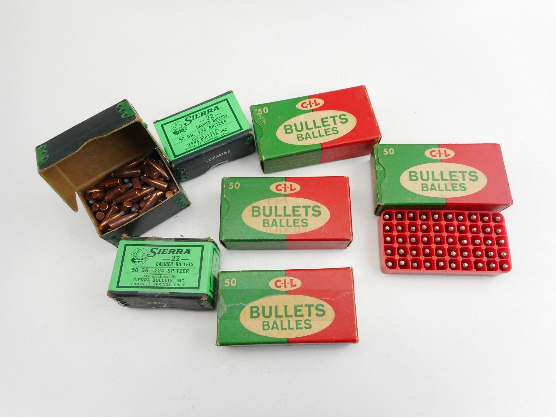 .224 CAL BULLETS, CIL, SIERRA BRANDS , 132 .224 CAL BULLETS (45 GRNS), 100 .224 CAL BULLETS (63 GRNS), 145 .224 CAL BULLETS (50 GRNS)