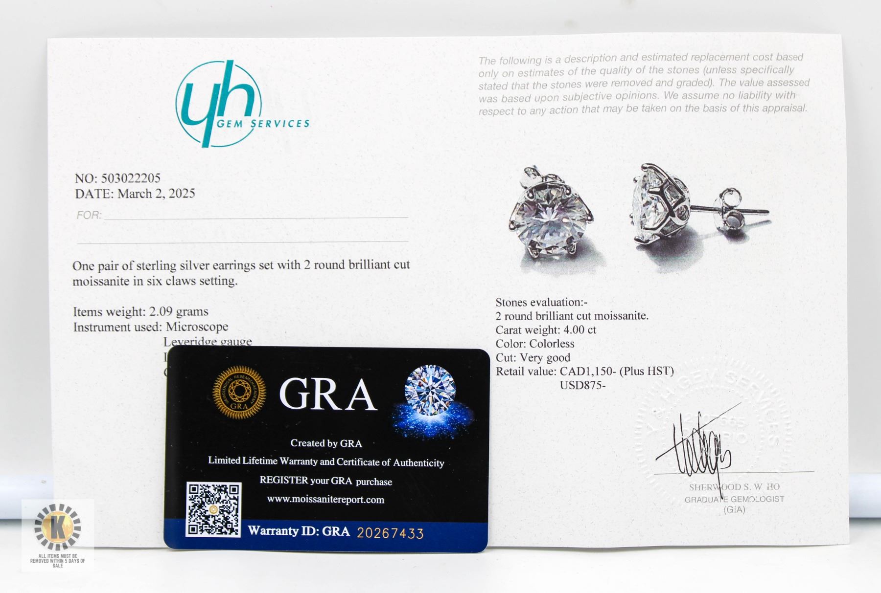MOISSANITE STONES VVS COLORLESS SET IN FILAGREE HEAD SET IN 925 SILVER EARRINGS RETAIL VALUE $1,150.00 **ALL ITEMS MUST BE REMOVED BY 5PM SATURDAY, JANUARY 3RD 2026. ALL REMAINING ITEMS WILL BE SUBJECT TO A $6.00 PER DAY STORAGE CHARGE. ANY ITEMS REMAINING AFTER MONDAY, JANUARY 19TH 2026 WILL BE CONSIDERED FORFEITED. NO REFUNDS WILL BE ISSUED FOR FORFEITED ITEMS. TO SCHEDULE A PICK UP APPOINTMENT CLICK HERE