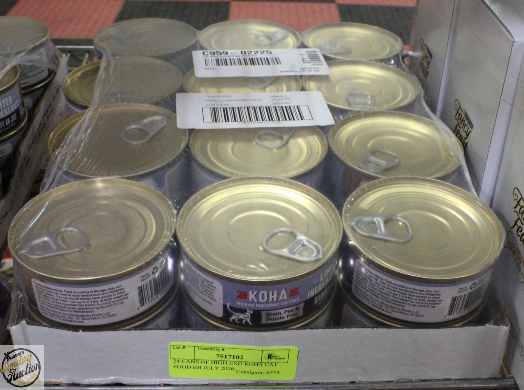 24 CANS OF HIGH END KOHA CAT FOOD BB JULY 2026
