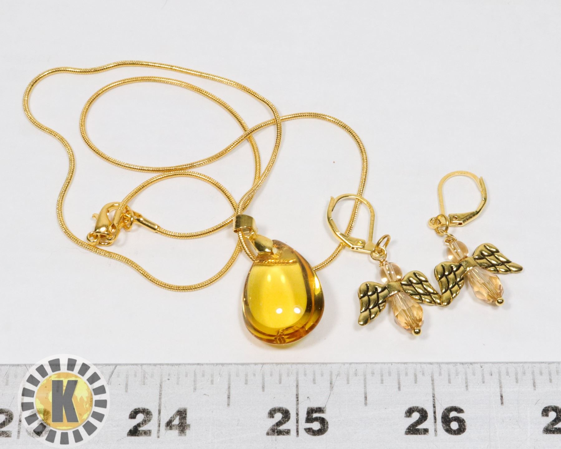 PENDANT ON AN 18" CHAIN AND SWAROVSKI CRYSTAL DROP EARRINGS WITH ANGEL WINGS ON LEVER BACK WIRES. JEWELRY***ITEM(S) LOCATED IN LETHBRIDGE ALBERTA