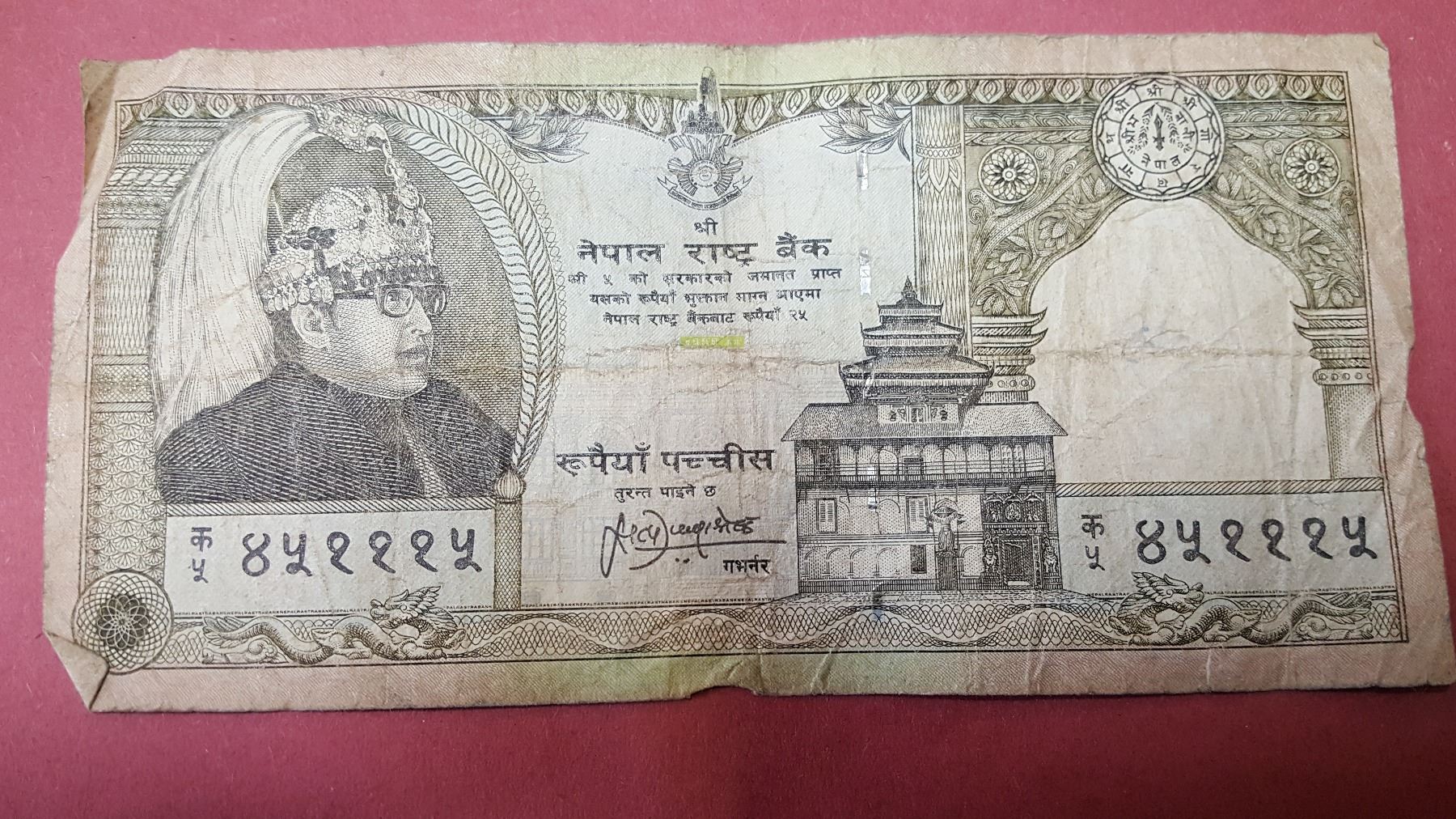 Texts: Rupees Twenty Five; Nepal Rastra Bank.