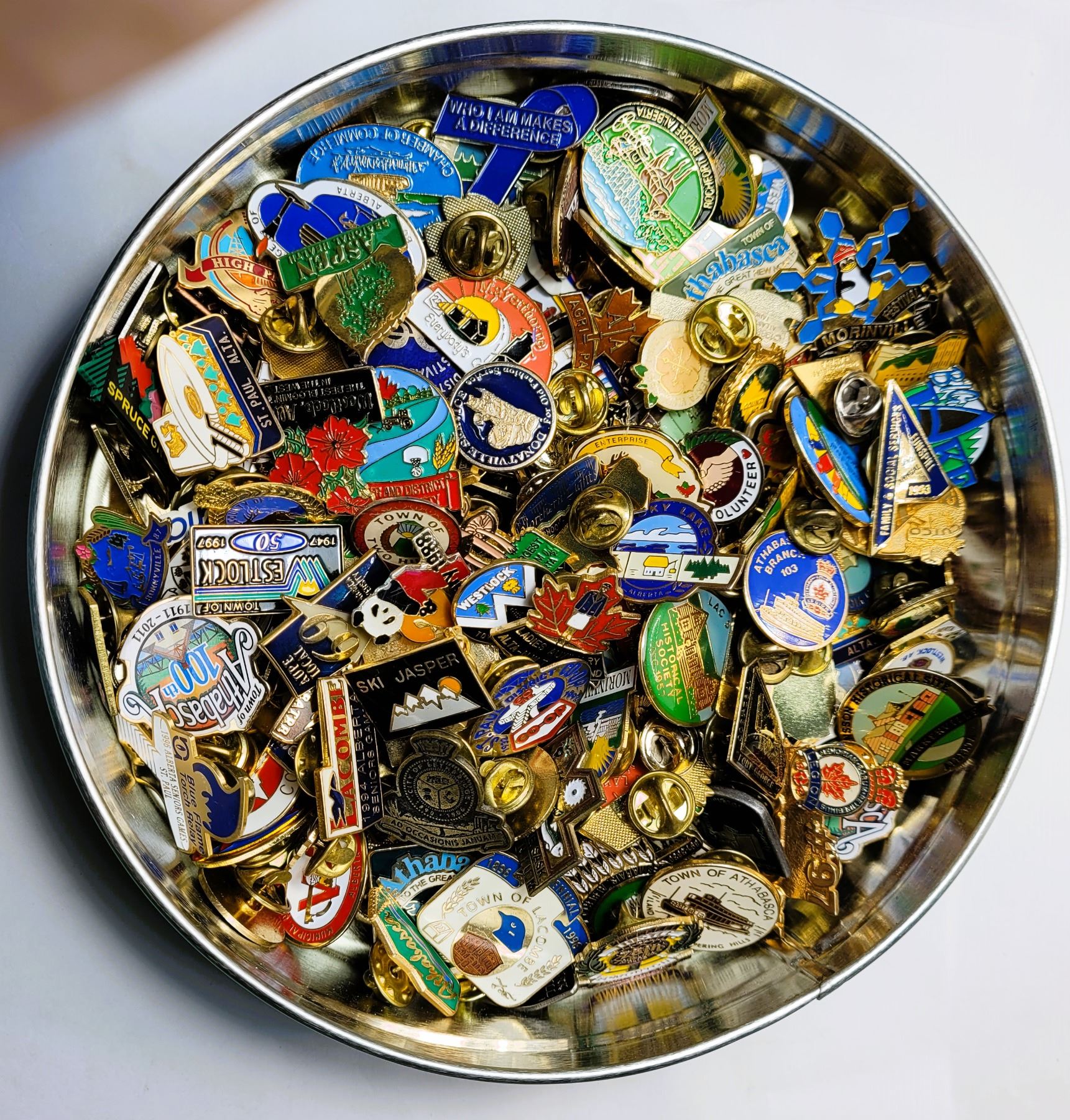 26) LOT OF 208 LAPEL PINS, MOSTLY FROM ALL OVER