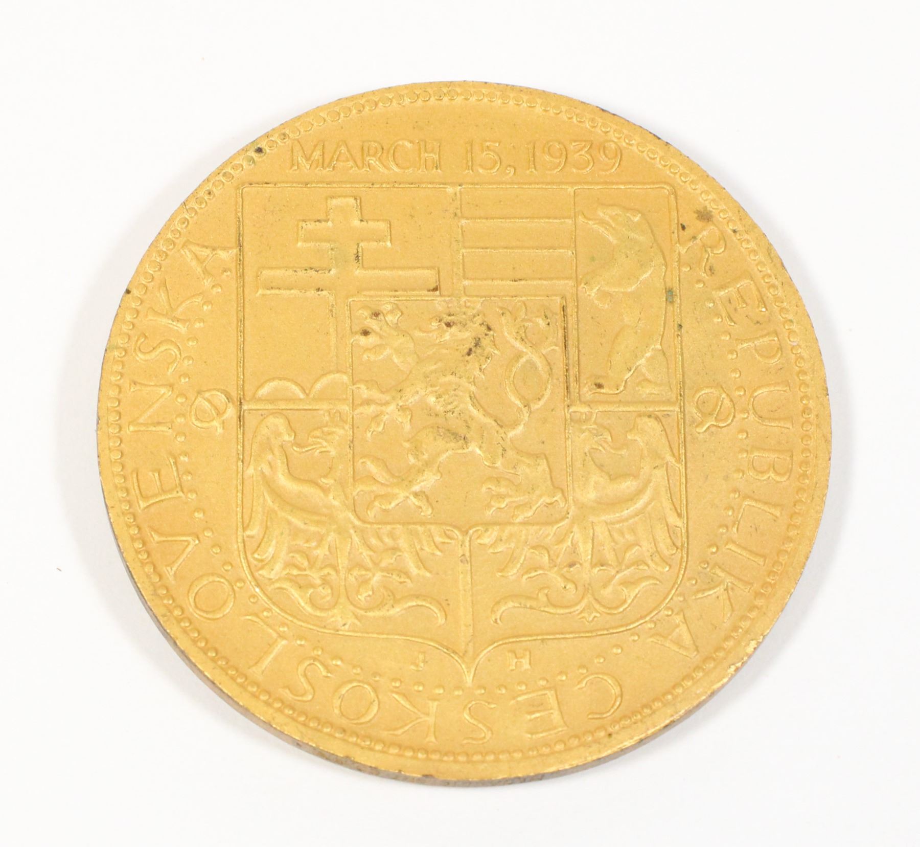 United States produced 1939 Medal, "Czechoslovakia Shall be Free Again" March 15th 1939, excellent detailing early World War Two Allied Forces Medal