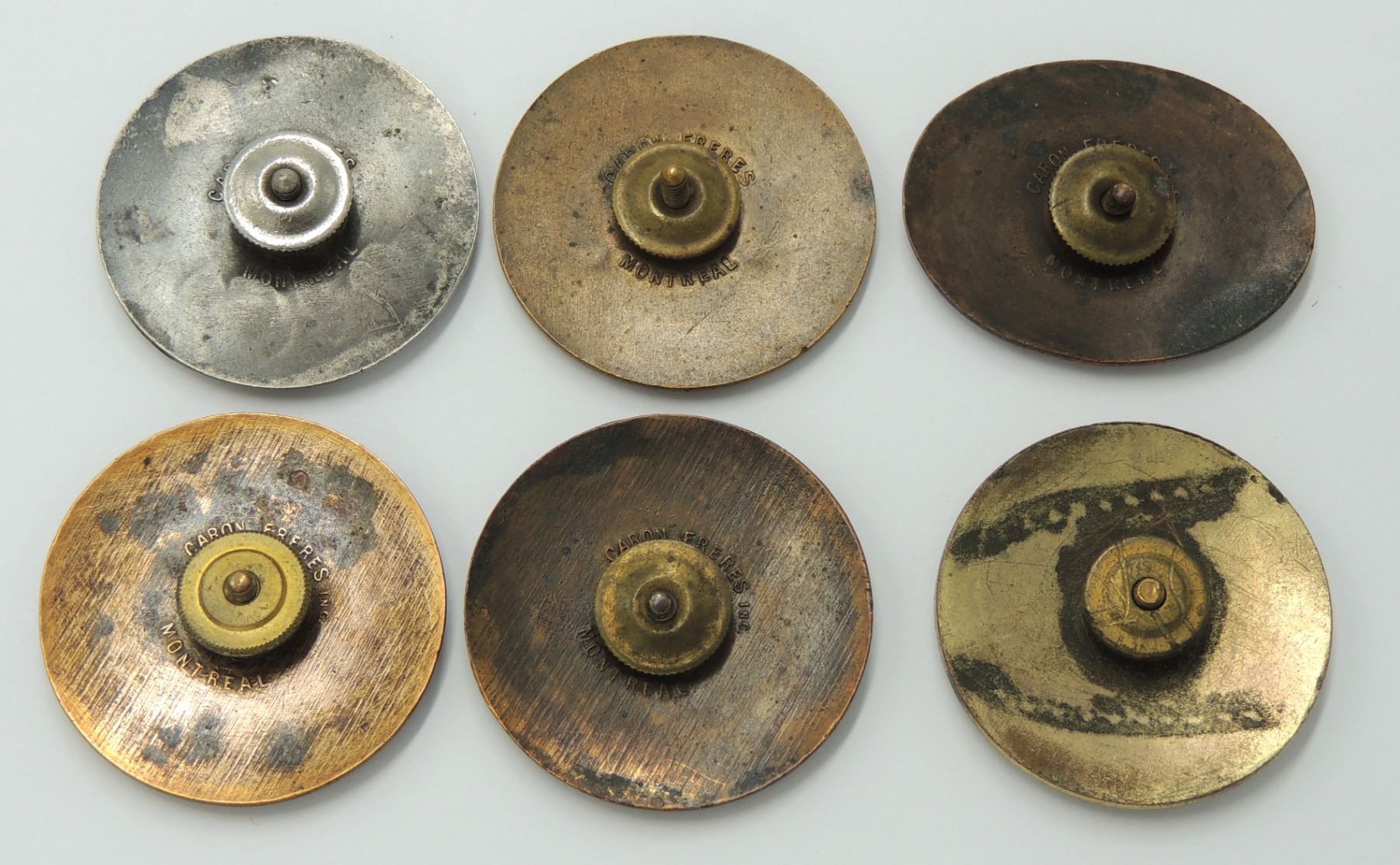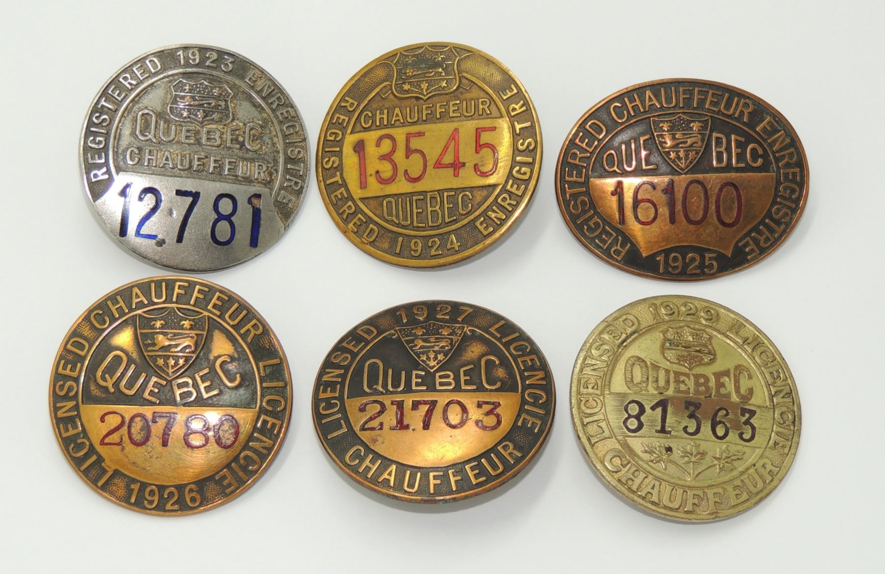 1923 1924 1925 1926 1927 1929 , 5 OF 6 ARE MAKER MARKED CARON FRERES MONTREAL ON REVERSE. VINTAGE AUTOMOBILE MEMORABILIA AUTOMOTIVE HISTORY AUTOMOTIBILIA TRANSPORTATION 20TH CENTURY 1900'S