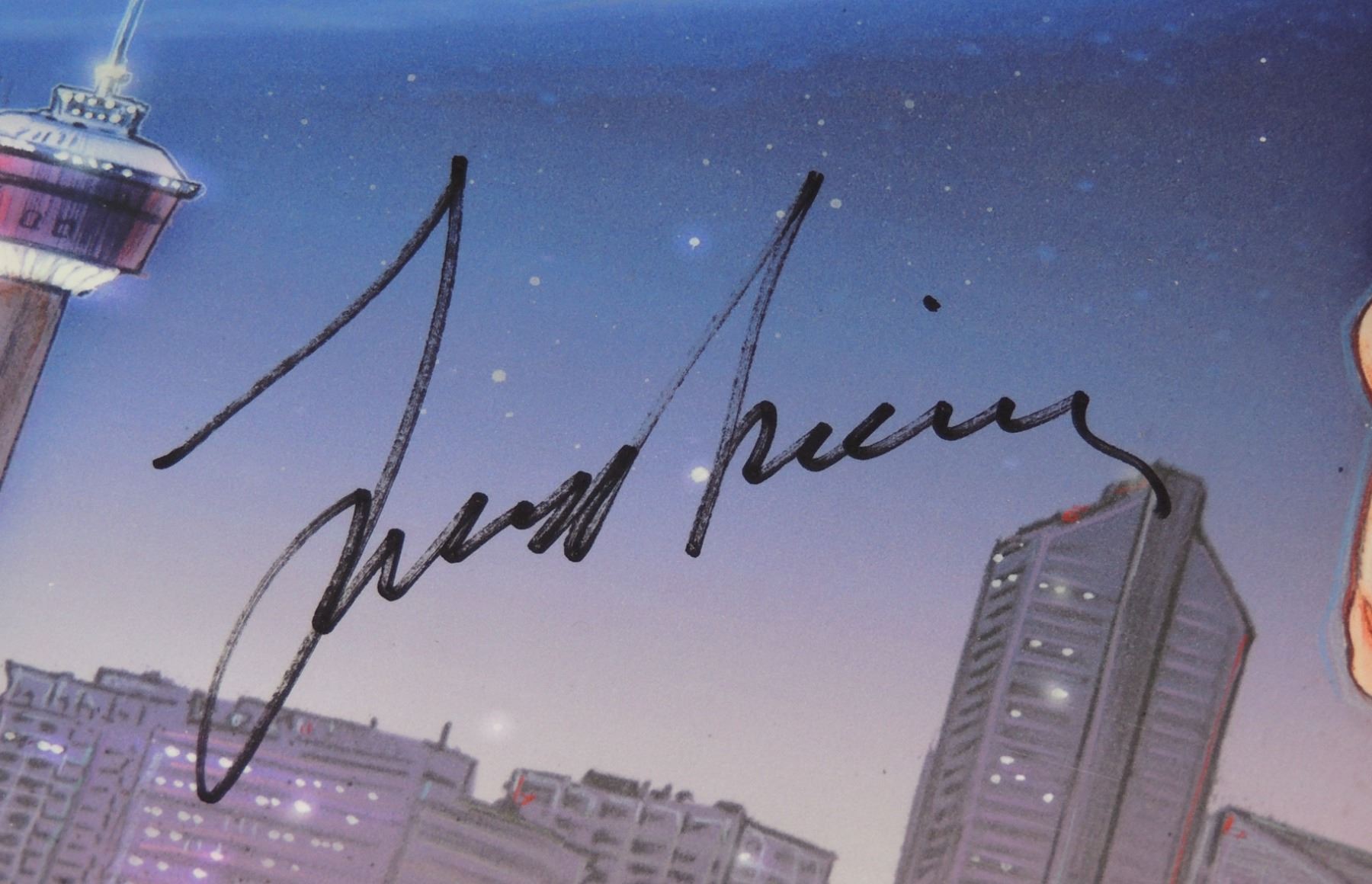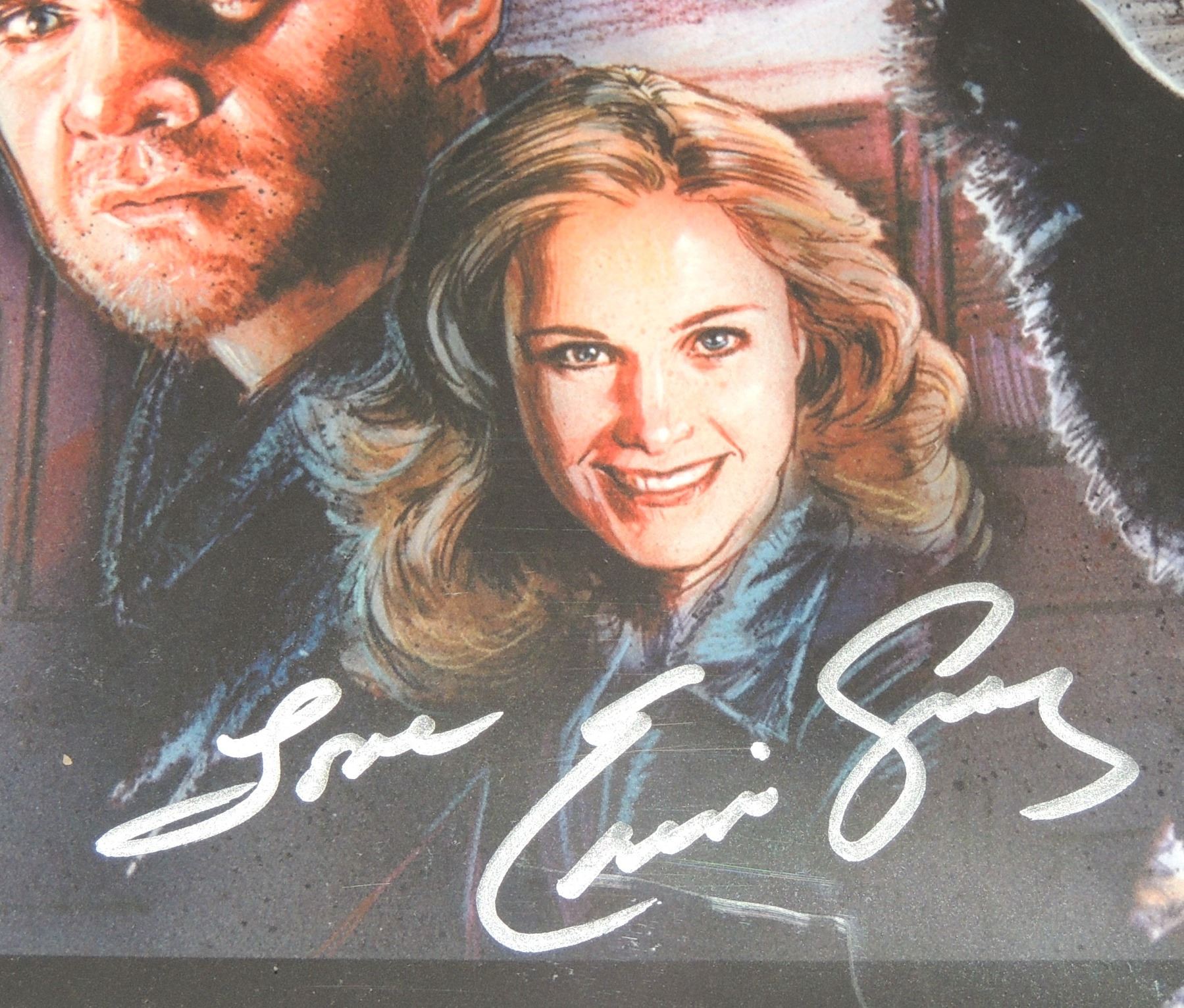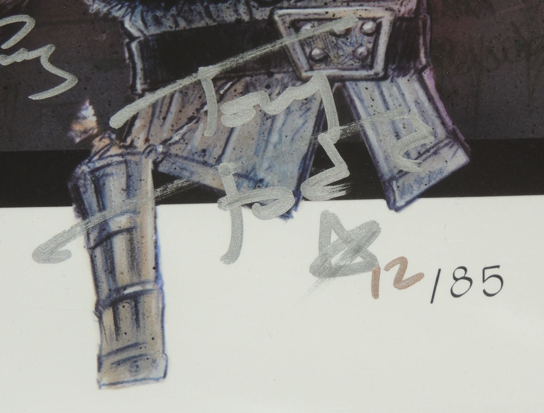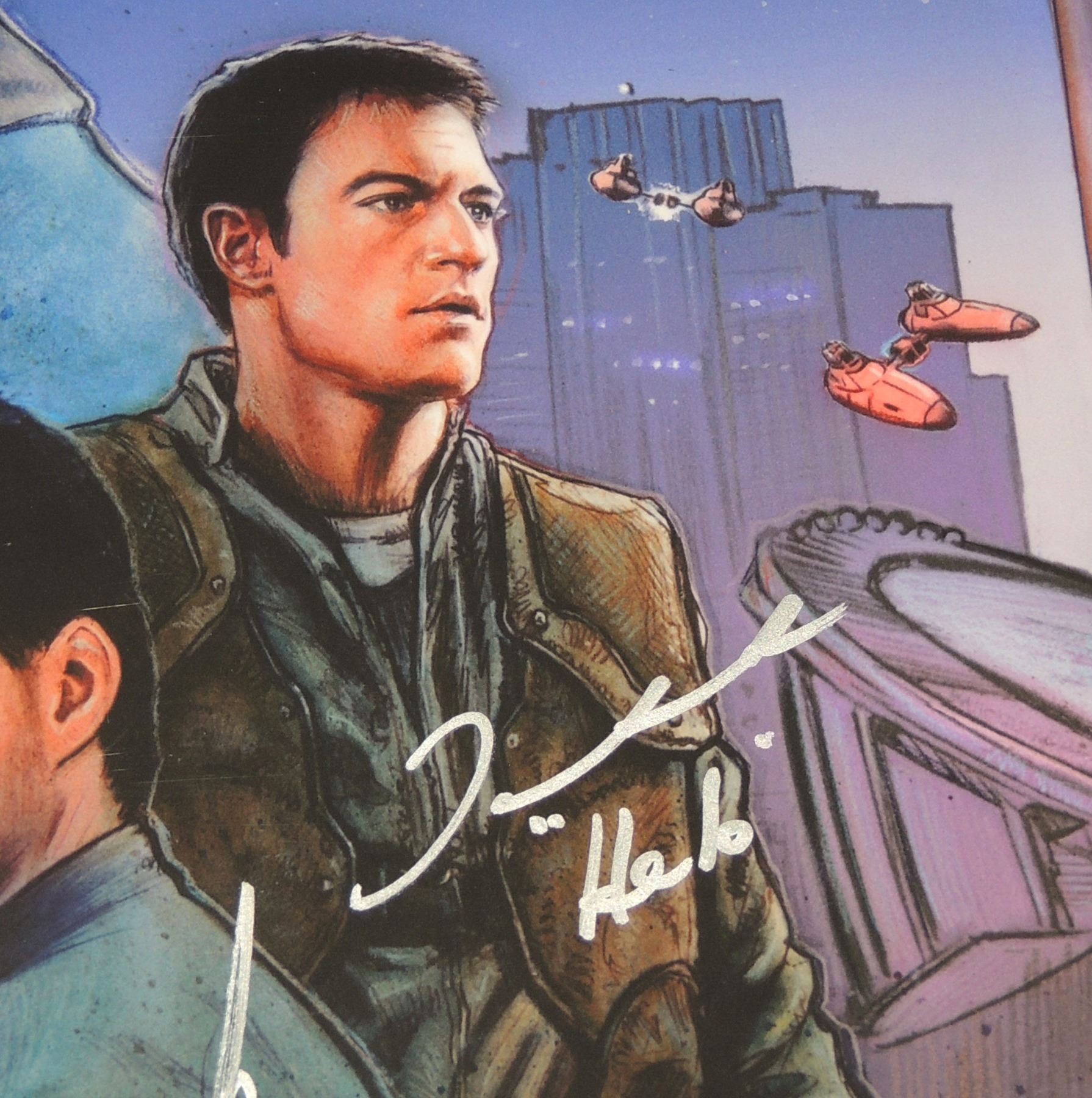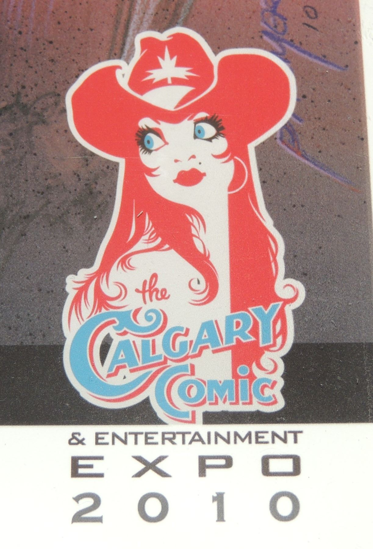 INCLUDES NINE SIGNATURES, SPOCK (LEONARD NIMOY) LANDO CALRISSIAN (BILLY DEE WILLIAMS), DR. TOLIAN SORAN/CLOCKWORK ORANGE ALEX (MALCOLM MCDOWELL), BRENT SPINER (DATA), TONY TODD (STAR TREK KURN/ HORROR CANDYMAN), TAHMOH PENIKETT (HELO FROM BATTLESTAR GALACTICA), AARON DOUGLAS (CHIEF FROM BATTLESTAR GALACTICA) AND ERIN GRAY (BUCK RODGERS, JASON GOES TO HELL) -INCLUDES ADDITIONAL SIDE SIGNATURE, POSTR HAS JASONPALMER.NET MARKING ON LOWER LEFT, AND MEASURES 22 X 17 INCHES IN SIZE. NUMBERED 12/85, FROM 2010 CALGARY COMIC & ENTERTAINMENT EXPO. RARE.