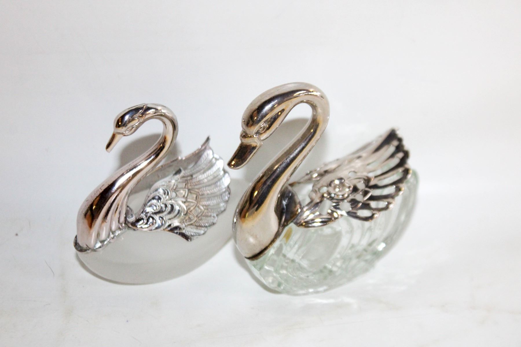 2PCS VINTAGE SWAN SALT KEEPERS
