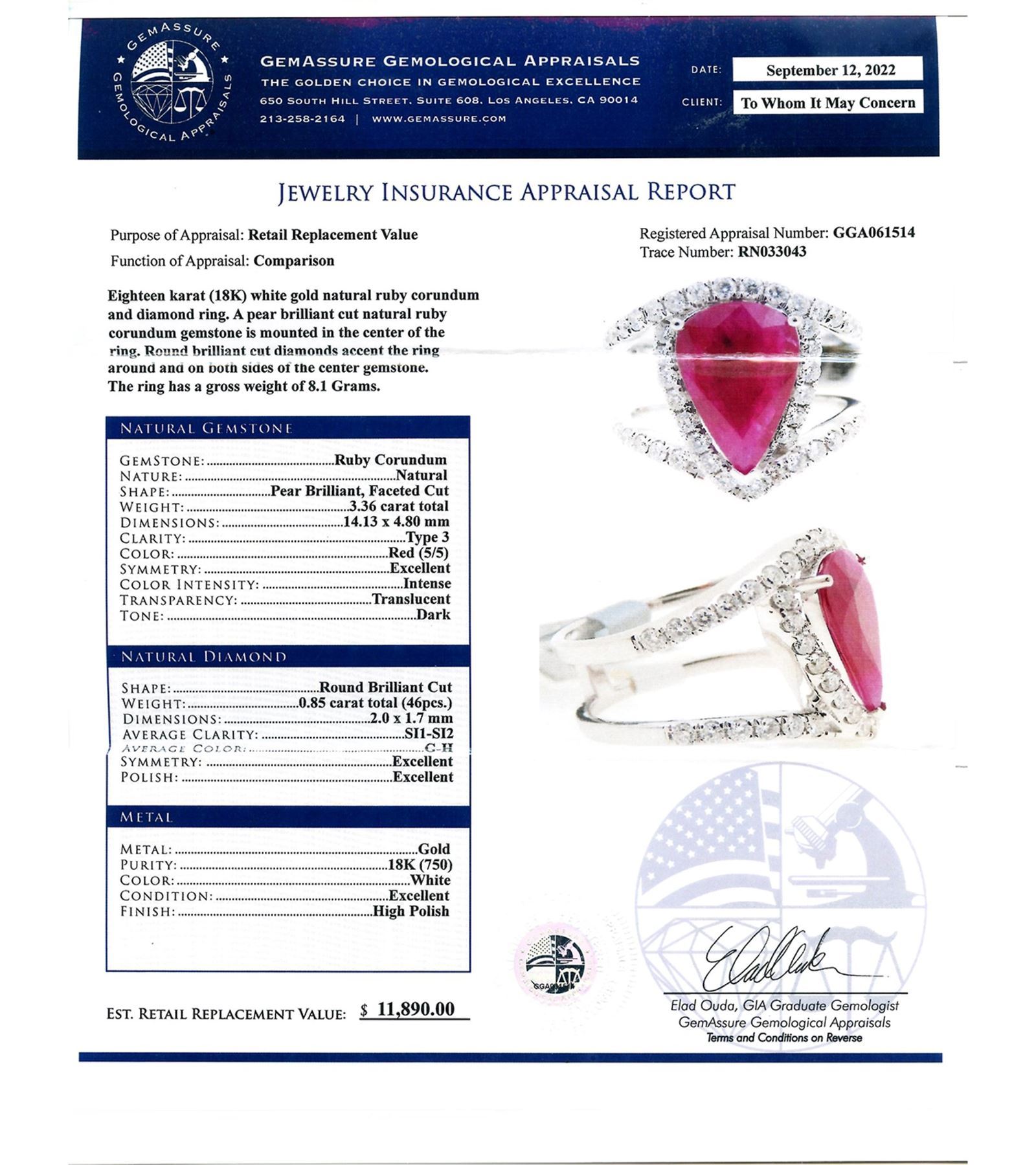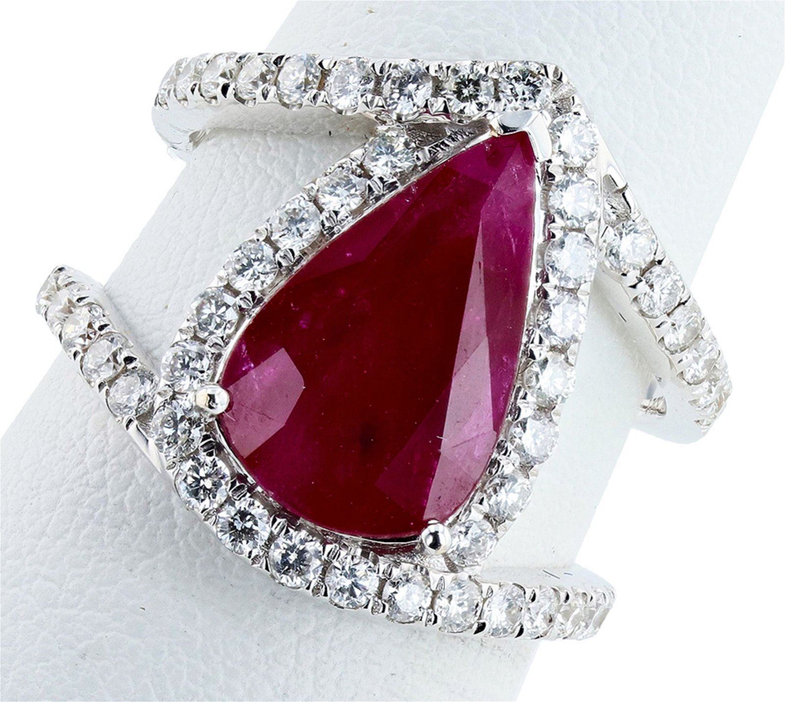 3.36CT RUBY & 0.85CTW DIAMOND 18K WHITE GOLD RING