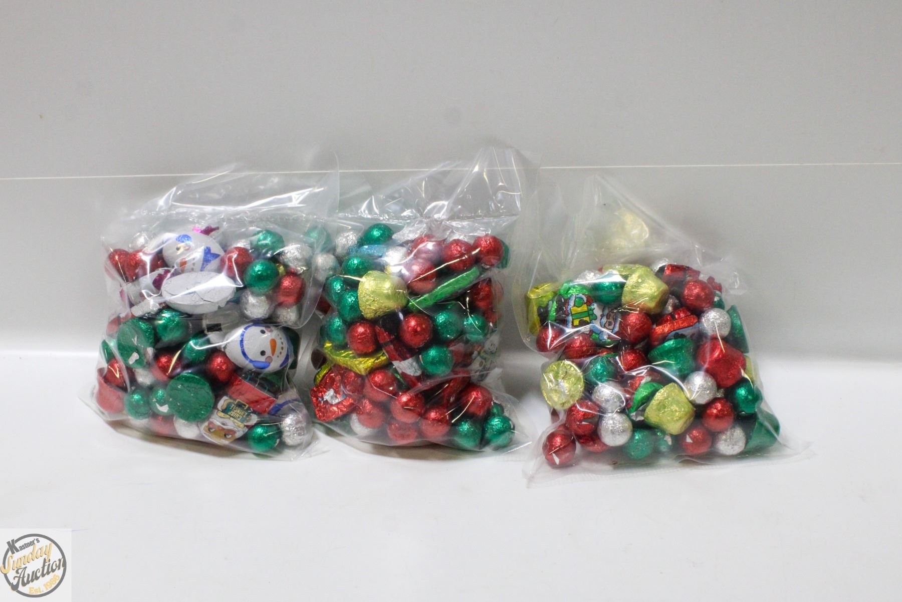 3 BAGS OF CHRISTMAS FOIL WRAPPED CHOCOLATES, KRISP