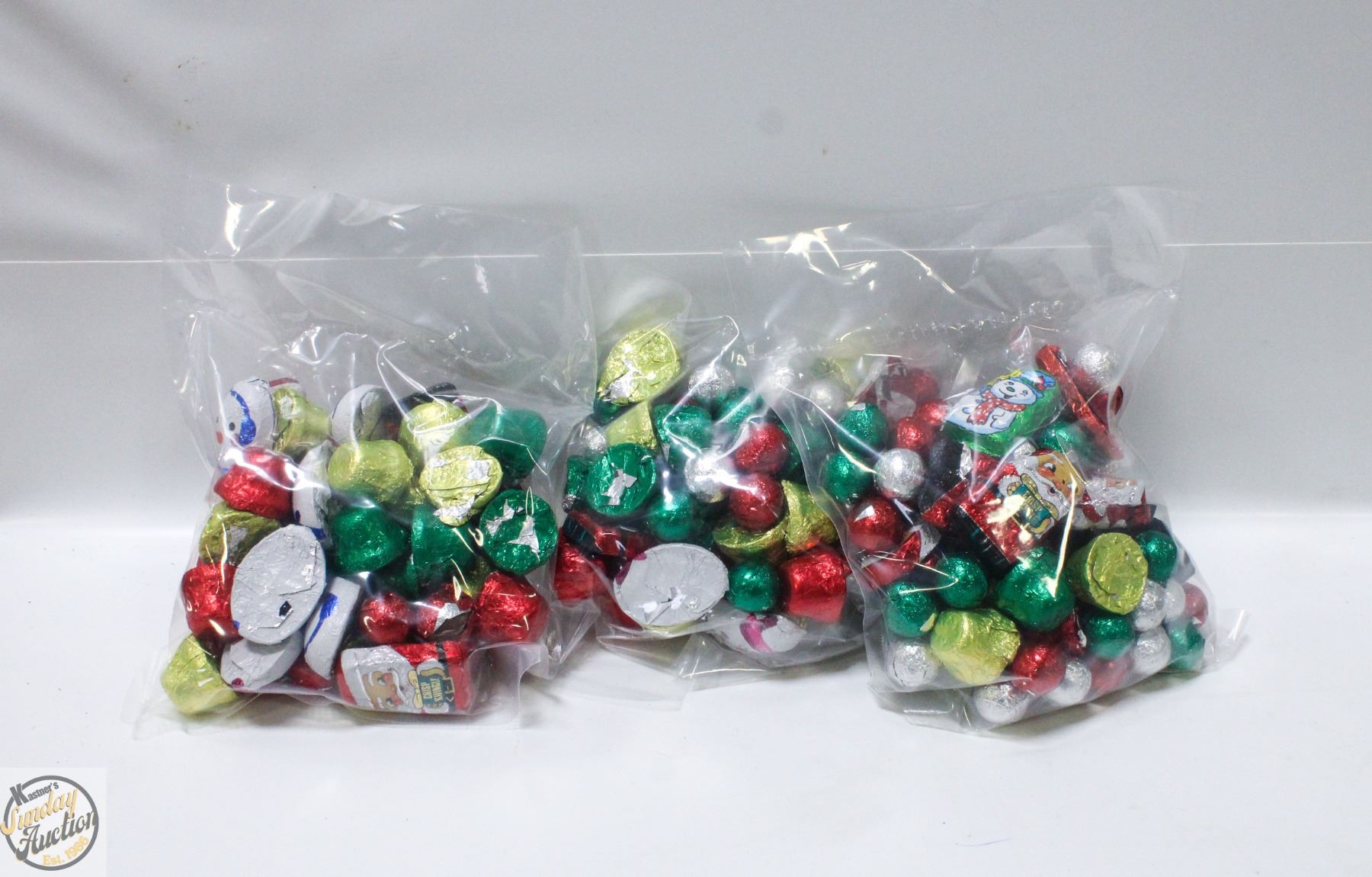 3 BAGS OF CHRISTMAS FOIL WRAPPED CHOCOLATES, KRISP
