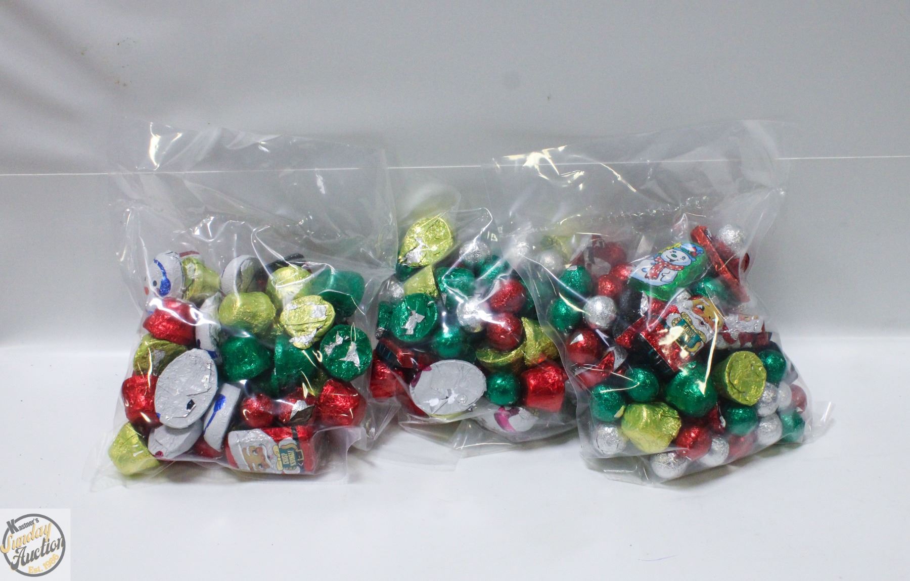 3 BAGS OF CHRISTMAS FOIL WRAPPED CHOCOLATES, KRISP