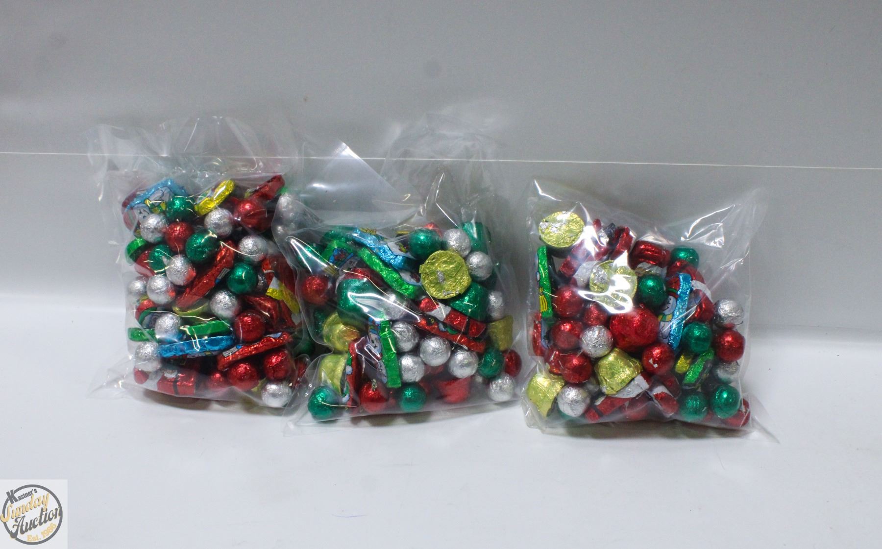 3 BAGS OF CHRISTMAS FOIL WRAPPED CHOCOLATES, KRISP