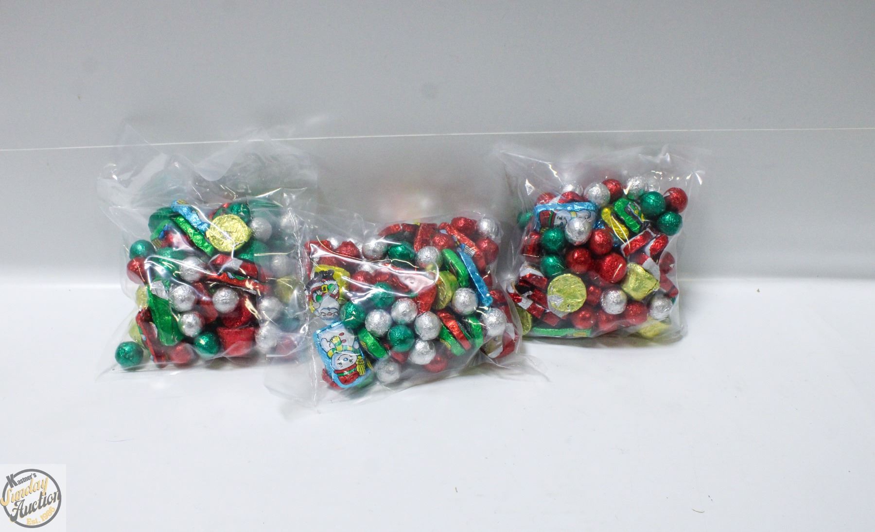 3 BAGS OF CHRISTMAS FOIL WRAPPED CHOCOLATES, KRISP