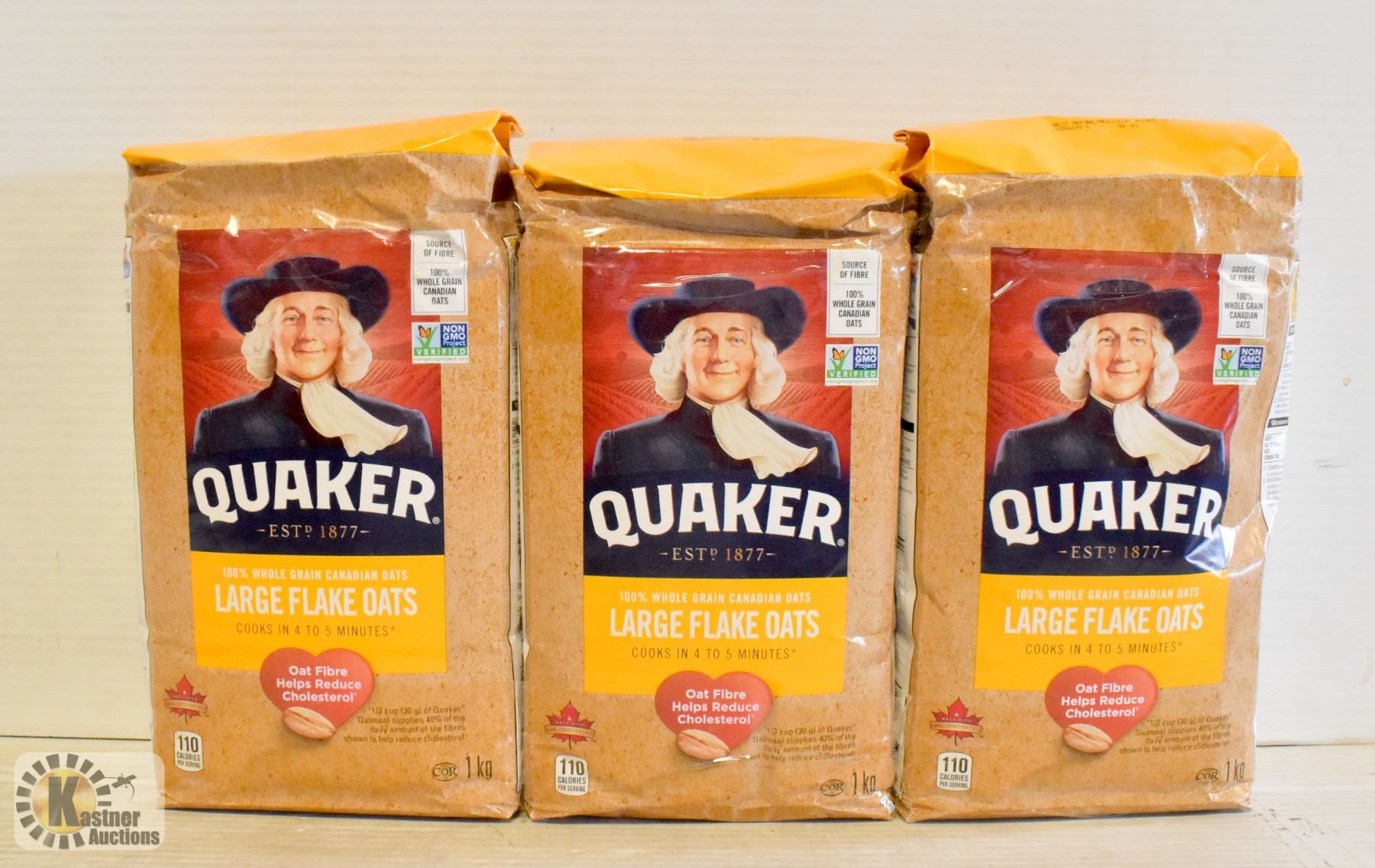 3 BAGS OF QUAKER LARGE FLAKE OATS 1KG BAGS