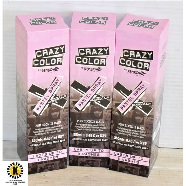 3 BOTTLES OF 250 mL MARSHMALLOW CRAZY COLOR PASTEL SPRAY TEMPORARY HAIR COLOR FOR BLONDE HAIR EXP 02/18
