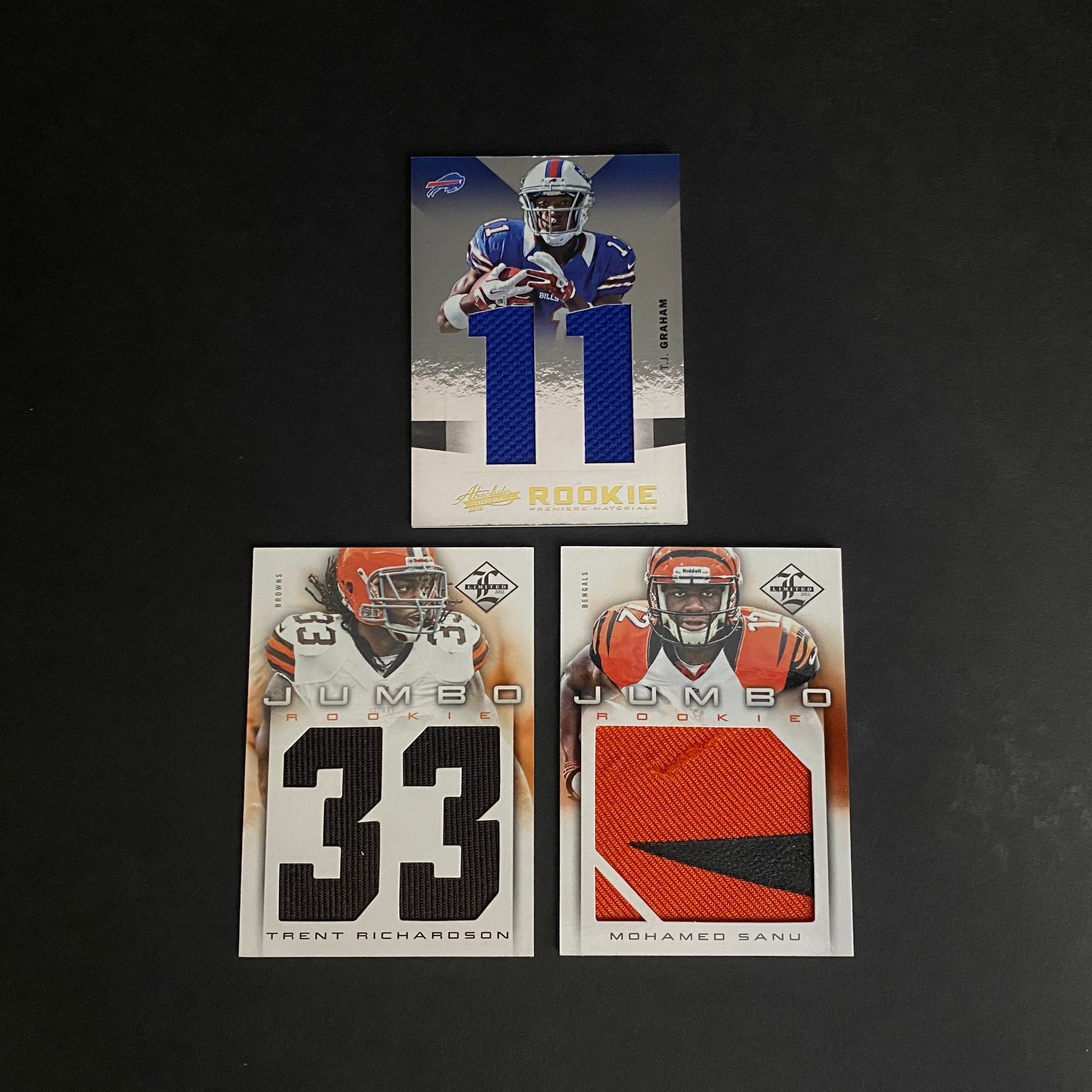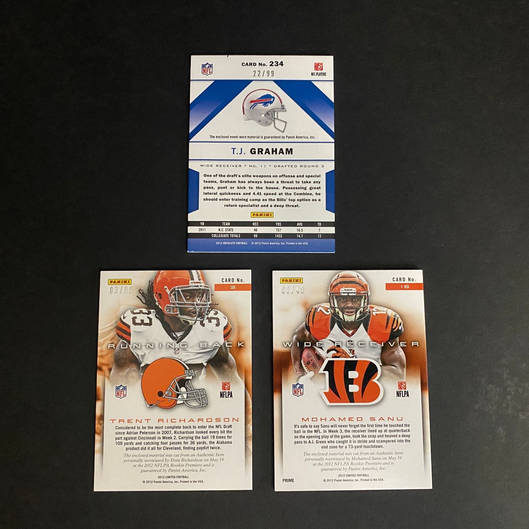 3 CARD JERSEY LOT PANINI FOOTBALL #/D/49 #/D/99 GRAHAM, SANU, RICHARDSON