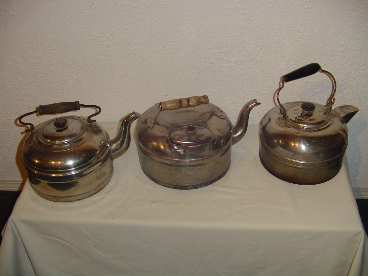 3 Different Old Nickel Cook Stove Kettles