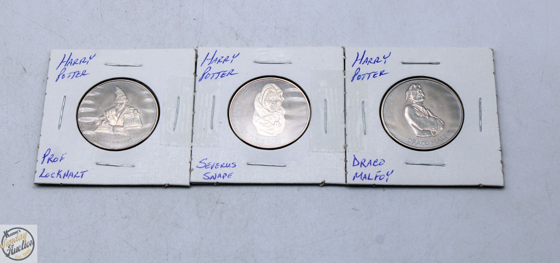 3 HARRY POTTER COINS; LOCKHART, SNAPE & DRACO