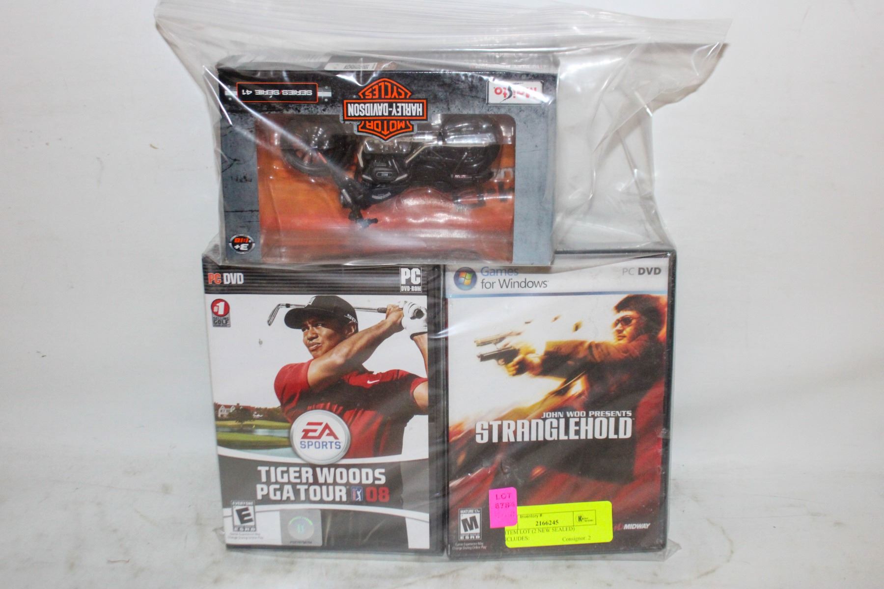 MAISTO HARLEY DAVIDSON SERIES 41 H-D CUSTOM + SEALED EA SPORTS 2008 TIGERWOODS PGA TOUR + SEALED 2007 PC DVD GAMES FOR WINDOWS JOHN WOO PRESENTS STRANGLEHOLD MIDWAY