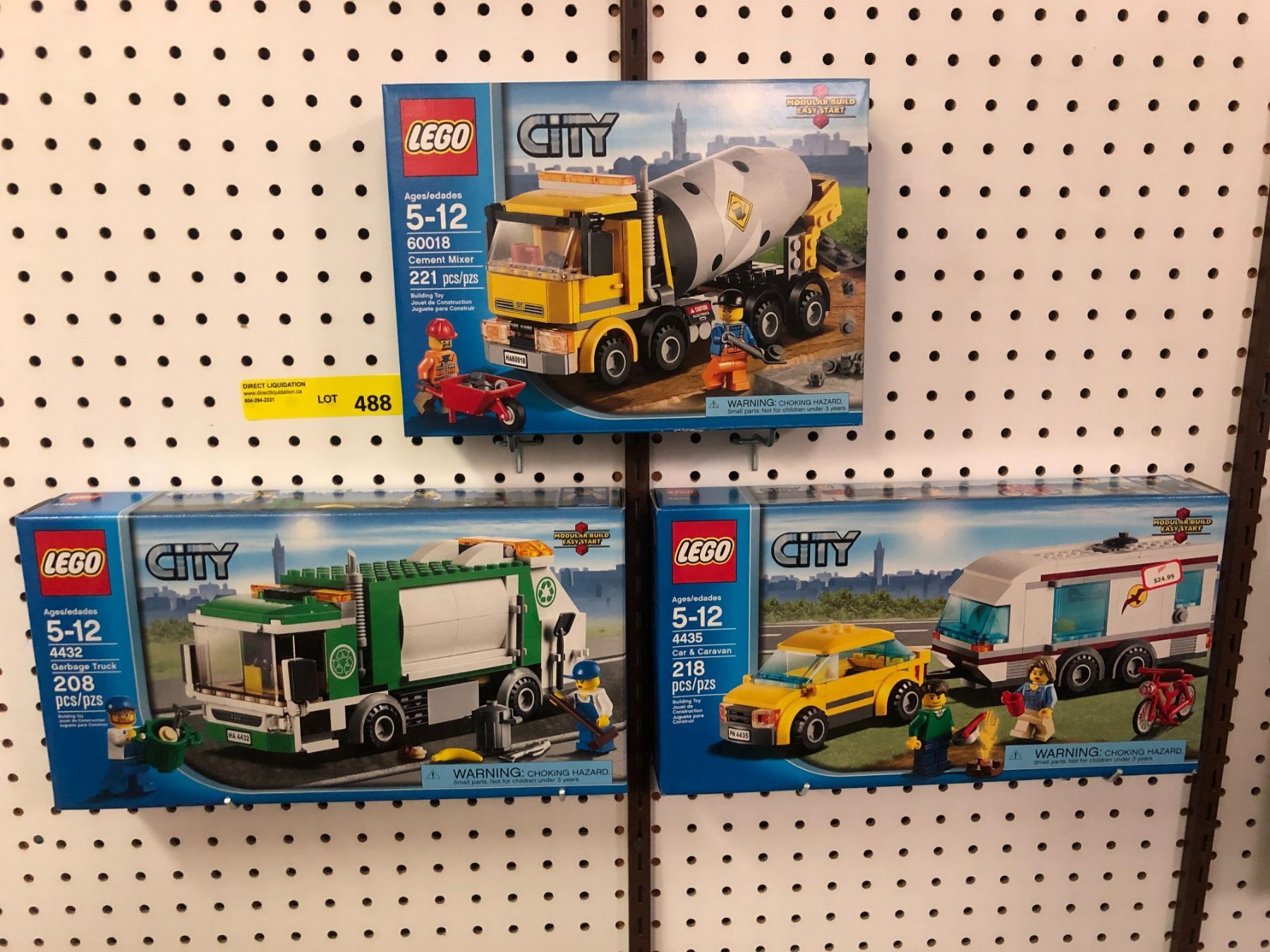 3 LEGO Items - Lego City 4432 Garbage Truck w/ 208 pcs, Lego City 4435 Car & Caravan w/ 218 pcs & Lego City 60018 Cement Mixer w/ 221 pcs