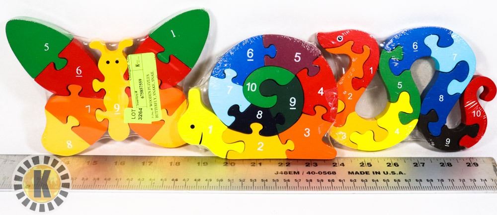 3 NEW WOODEN PUZZLES SNAKE, BUTTERFLY, SNAIL
