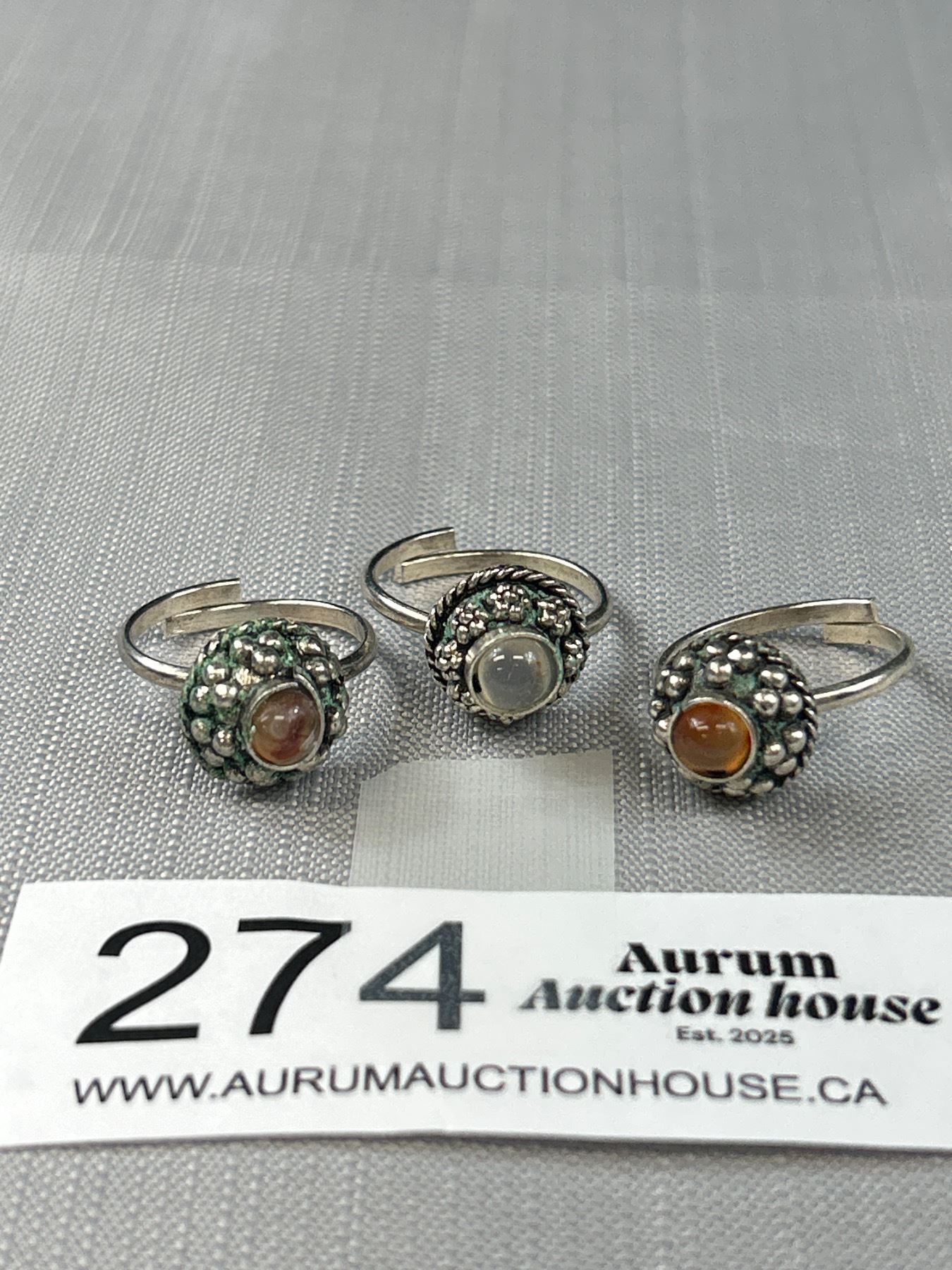 3 Vintage Silver w/ Agate Stones Rings, Adjustible
