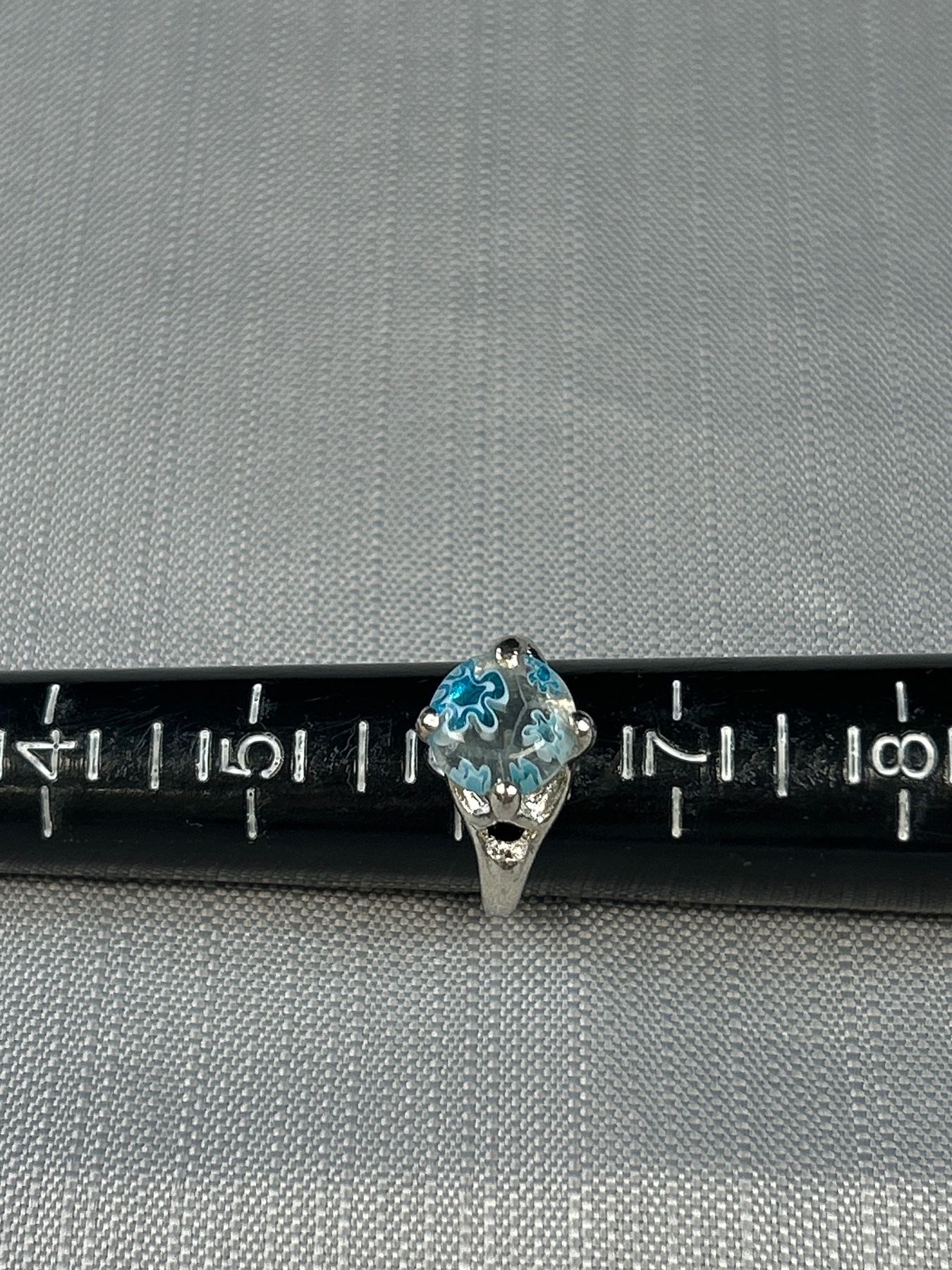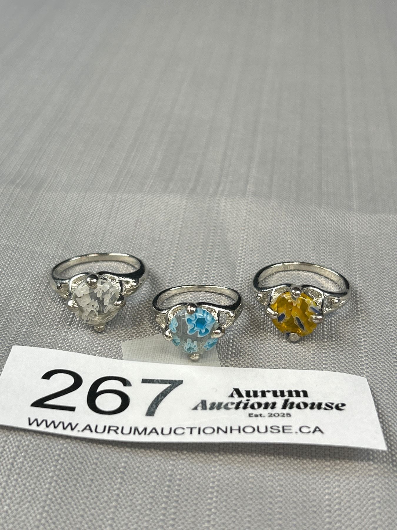 3 Vintage Silver w/ Millefiore Glass Stones Rings, Sizes 6,8 + 8.5