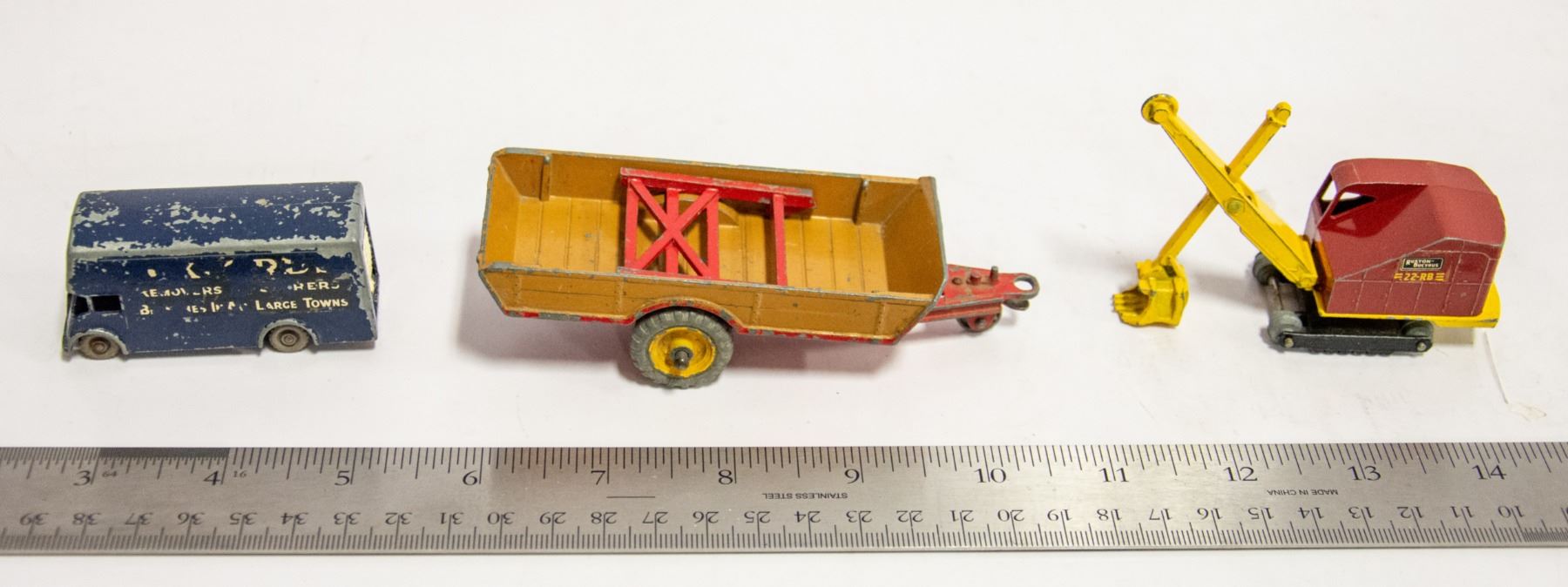 3 X 1950'S DINKY MATCHBOX DIE CAST CARS BUS CRANE