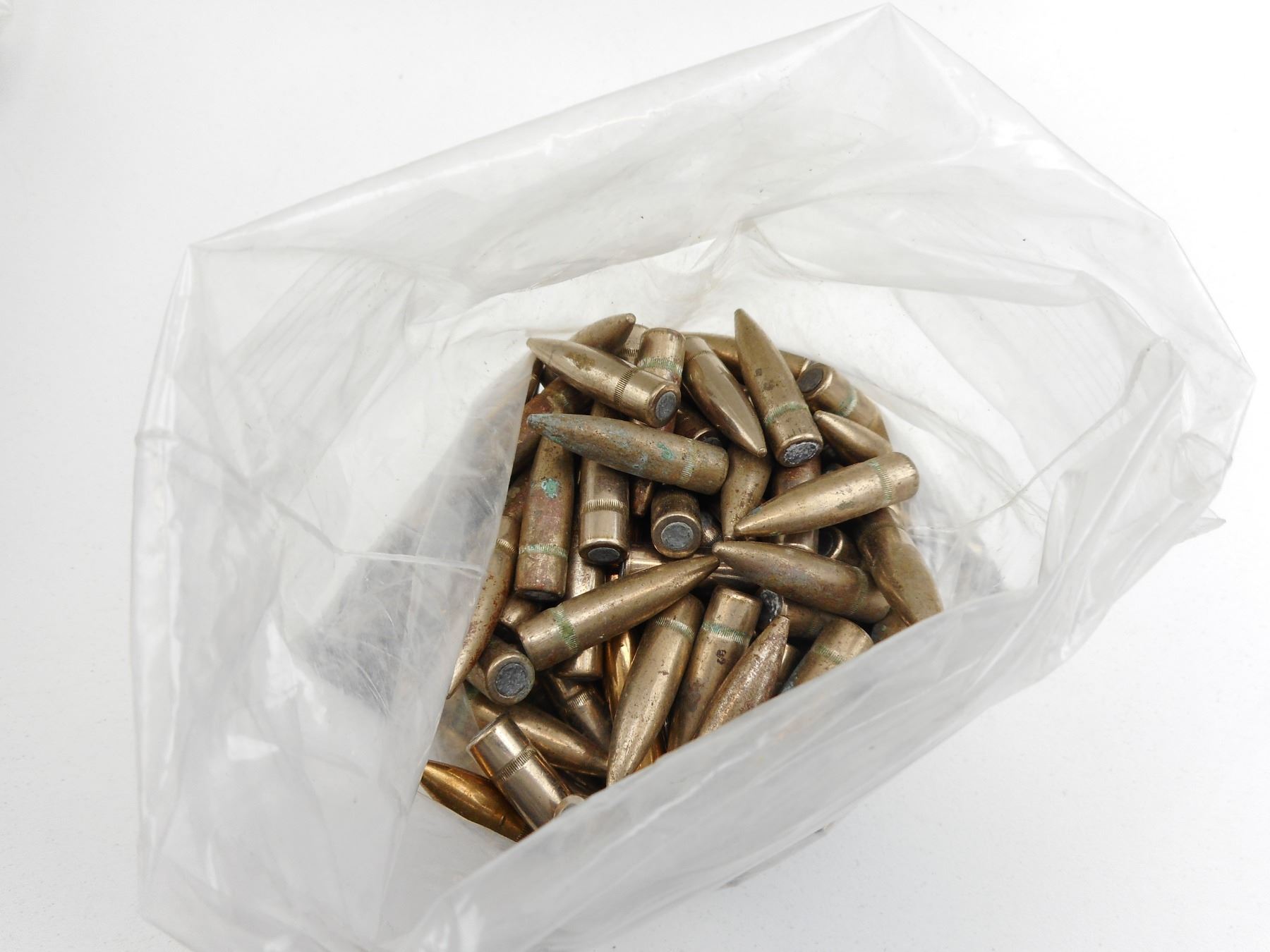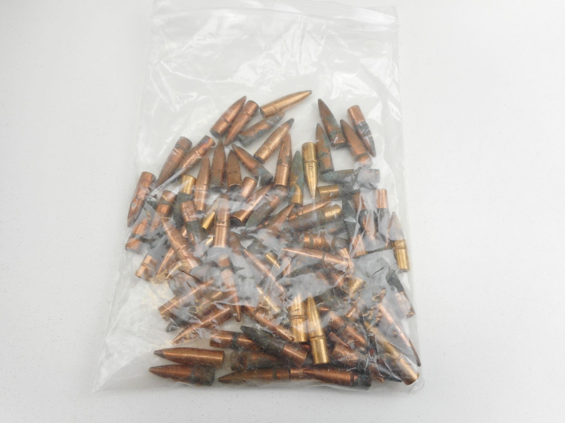 .303 BRITISH CANADIAN MILITARY BULLETS , APPROX 337 .303 BRITISH, MK7 NICKLE PLATED, COPPER JACKET, SALVAGED BULLETS