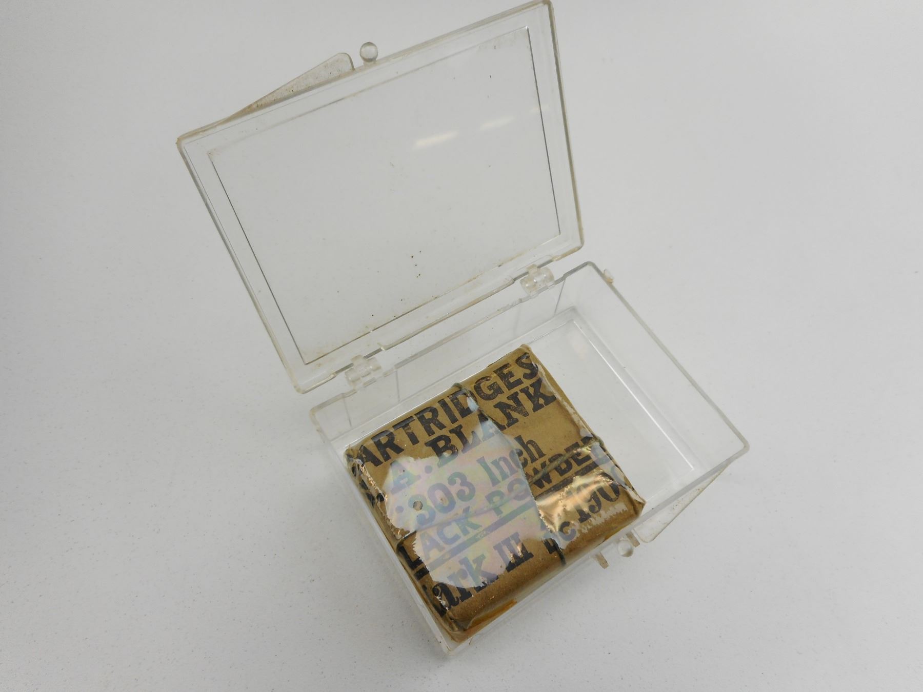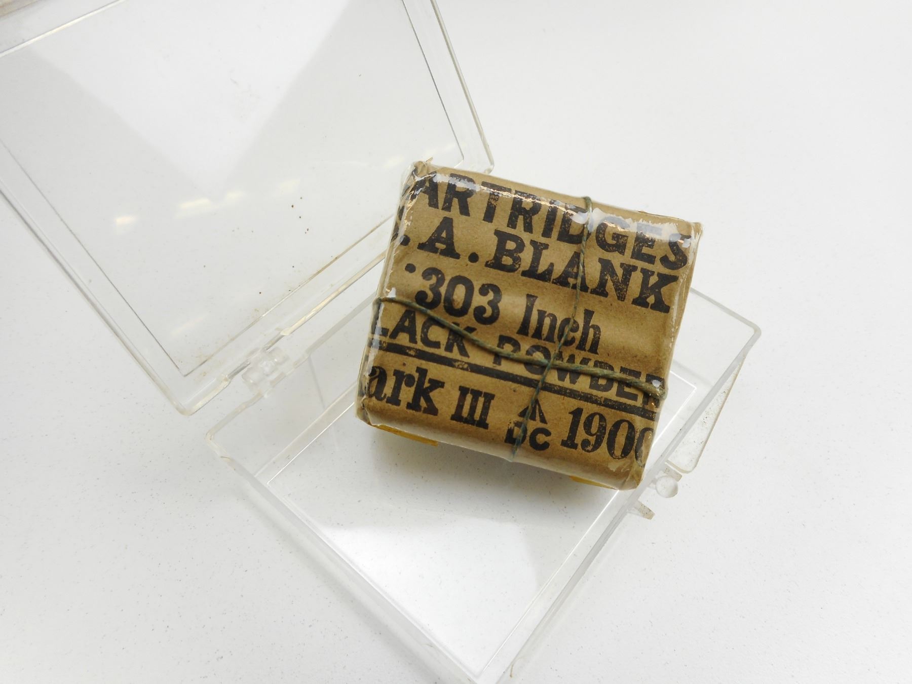 .303 INCH BLACK POWDER, MARK III BLANKS , 10 RNDS .303 INCH BLACK POWDER, MARK III BLANKS, DATE 1900, IN HARD PLASTIC COLLECTORS CASE