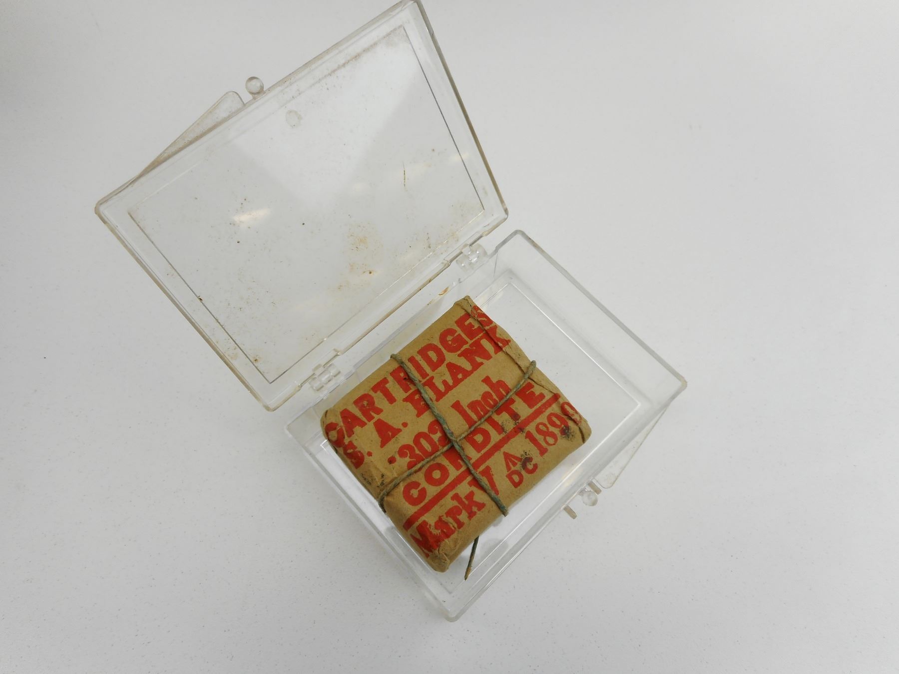 .303 INCH CORDITE, MARK V BLANKS , 10 RNDS .303 INCH CORDITE, MARK V, DATED 1890 BLANKS, IN HARD PLASTIC COLLECTORS CASE