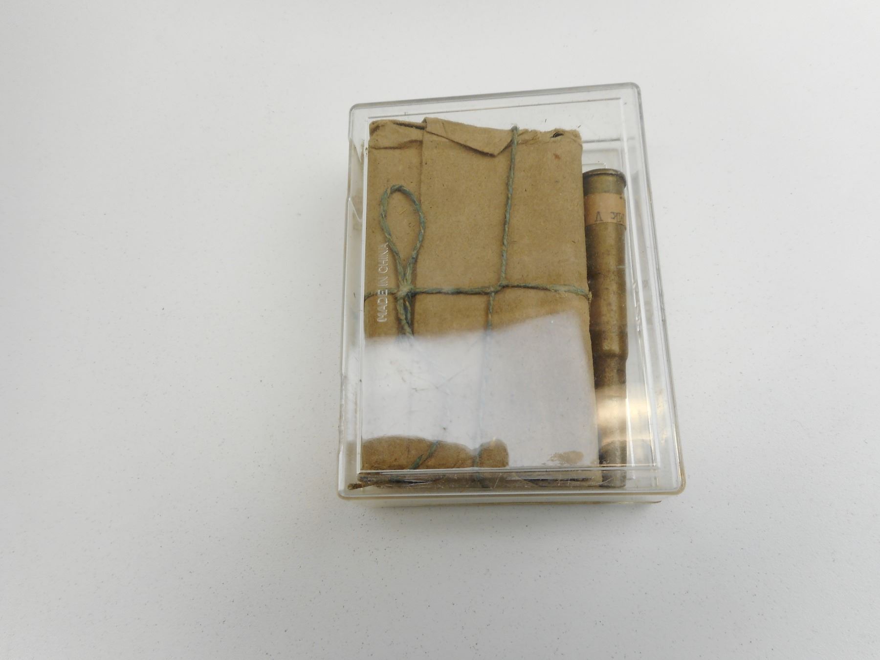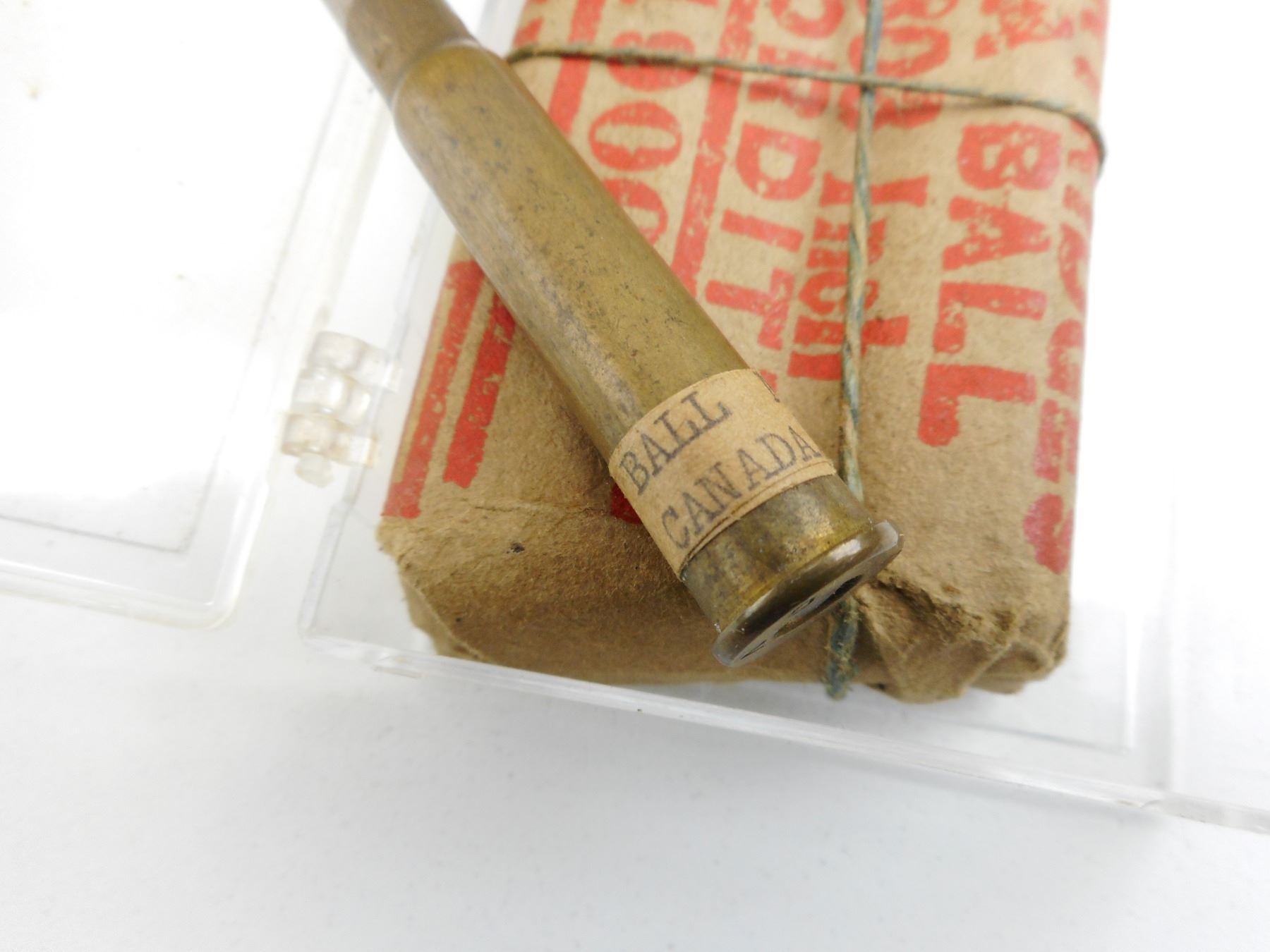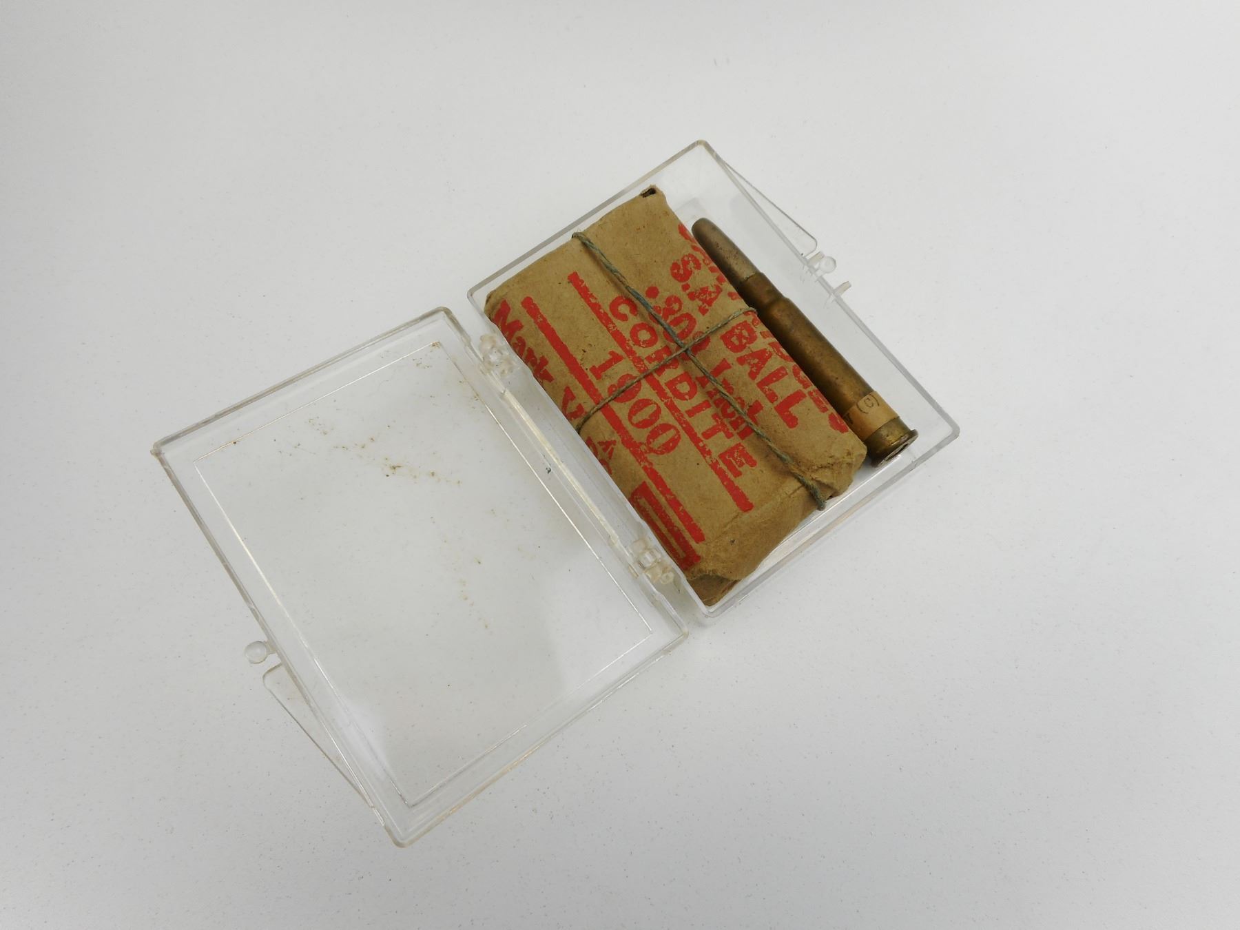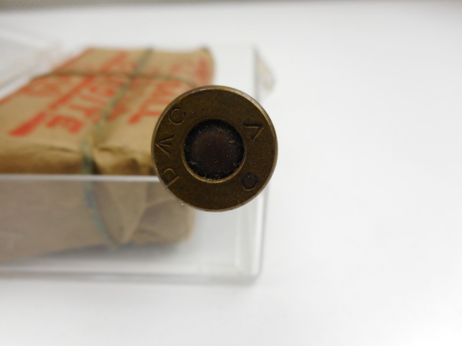 .303 INCH CORDITE MK V AMMO , 9 RNDS .303 INCH CORDITE MK V AMMO, DATED 1900 IN HARD PLASTIC COLLECTOR B OX