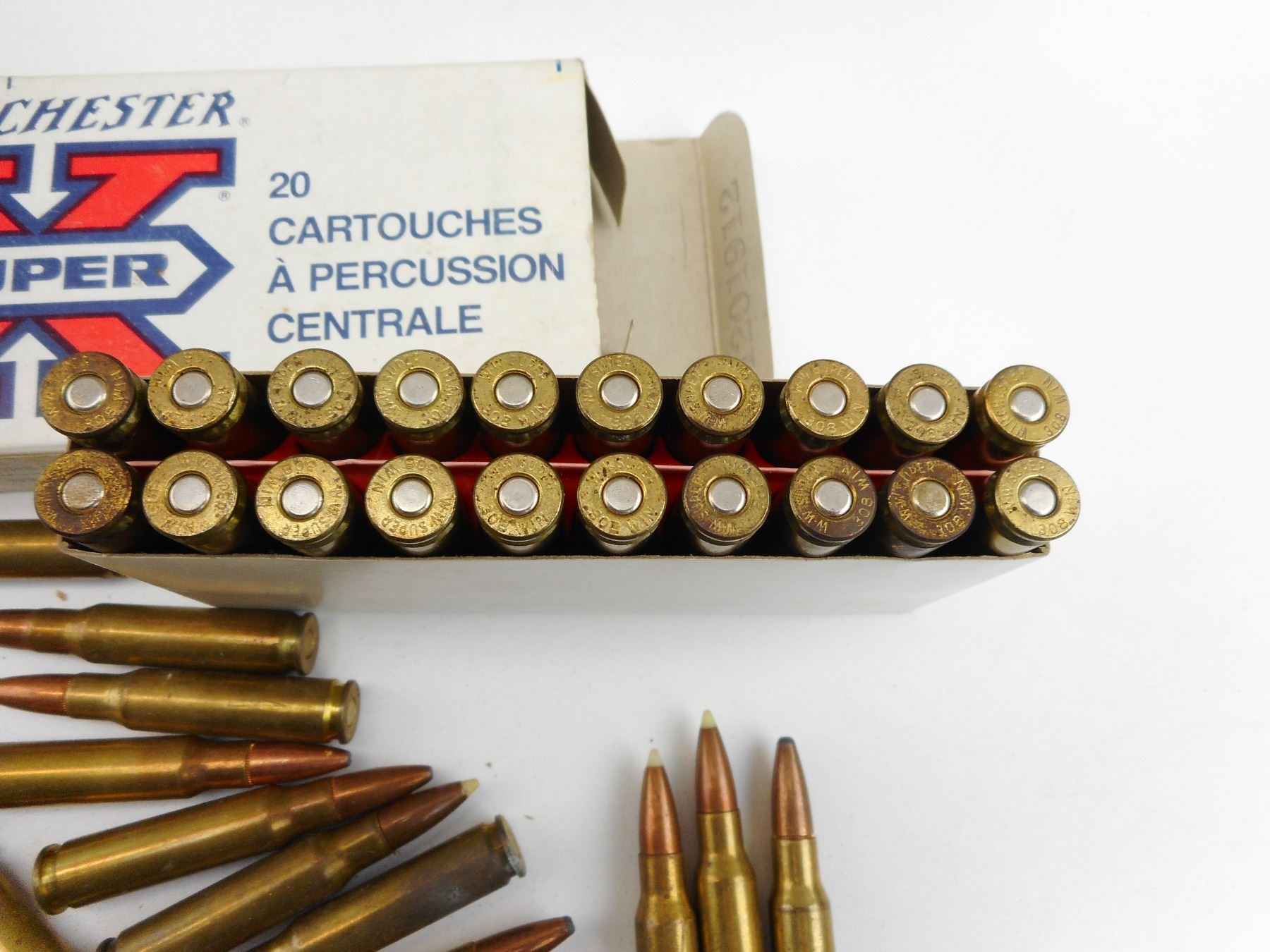 308 ASSORTED AMMO , 42 RNDS ASSORTED 308 AMMO, HUNTING SOFTPOINT BULLET RELOADS. NYLON TIP, AND SILVER TIP