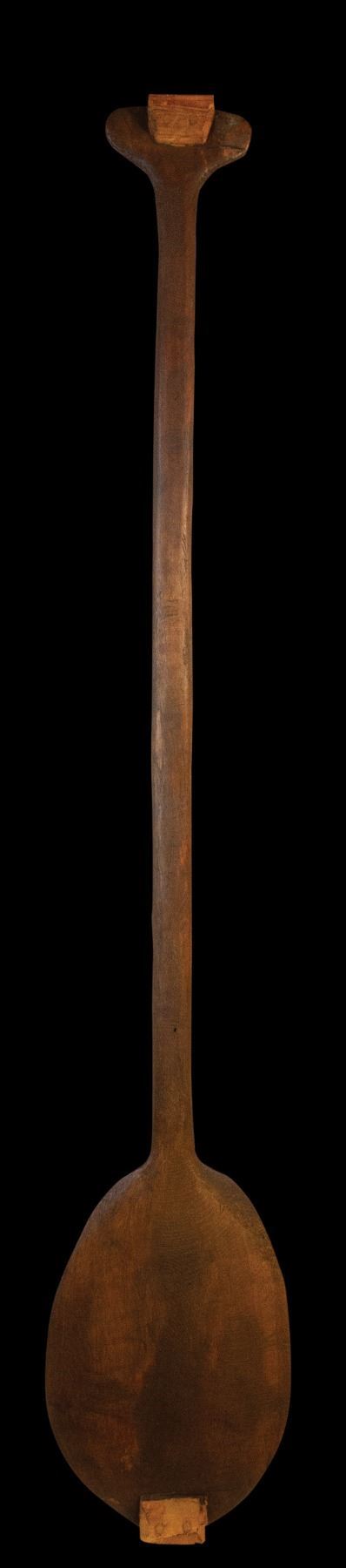 (1960s) A master pattern for an OA Hawaiian canoe paddle. Another wall decor item from the OA catalog. Spindle chocks present. 54"x9.5". VG+ with typical wear.