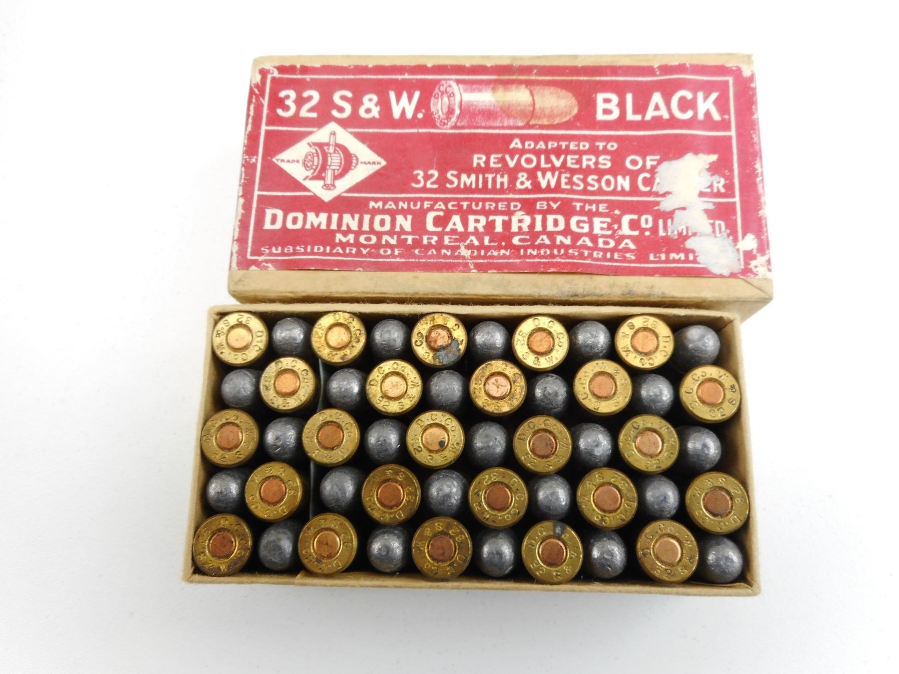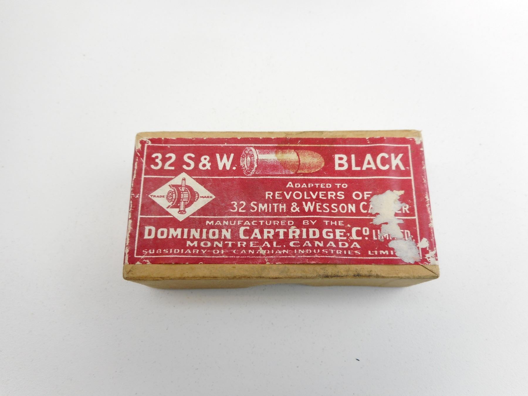 32 S & W BLACK AMMO , 50 RNDS 32 S & W BLACK AMMO, IN VINTAGE DOMINION BOX