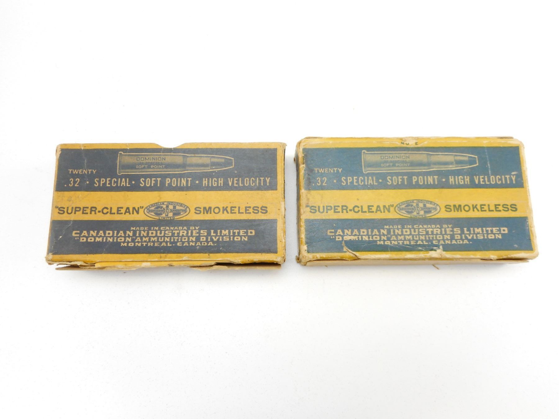 .32 SPECIAL AMMO , 26 RNDS 32 SPECIAL SOFT POINT, HIGH VELOCITY AMMO IN VINTAGE DOMINION BOXES