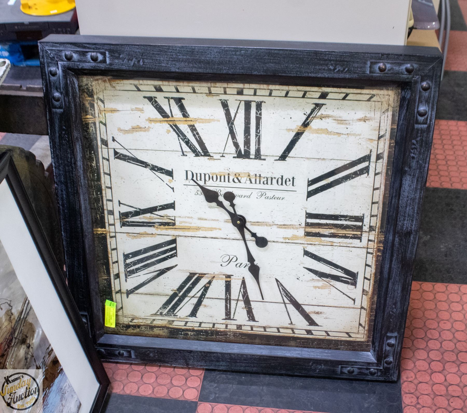 STYLE WALL CLOCK **ALL ITEMS MUST BE REMOVED BY 5PM SATURDAY, MARCH 7TH 2026. ALL REMAINING ITEMS WILL BE SUBJECT TO A $6.00 PER DAY STORAGE CHARGE. ANY ITEMS REMAINING AFTER MONDAY, MARCH 30TH 2026 WILL BE CONSIDERED FORFEITED. NO REFUNDS WILL BE ISSUED FOR FORFEITED ITEMS. TO SCHEDULE A PICK UP APPOINTMENT CLICK HERE