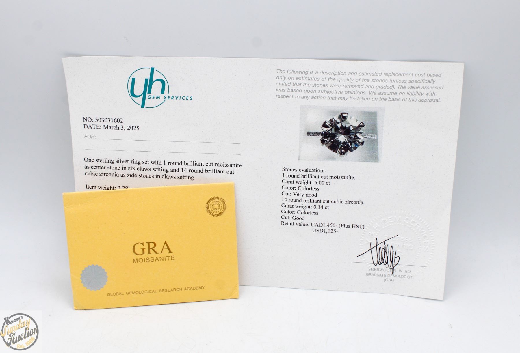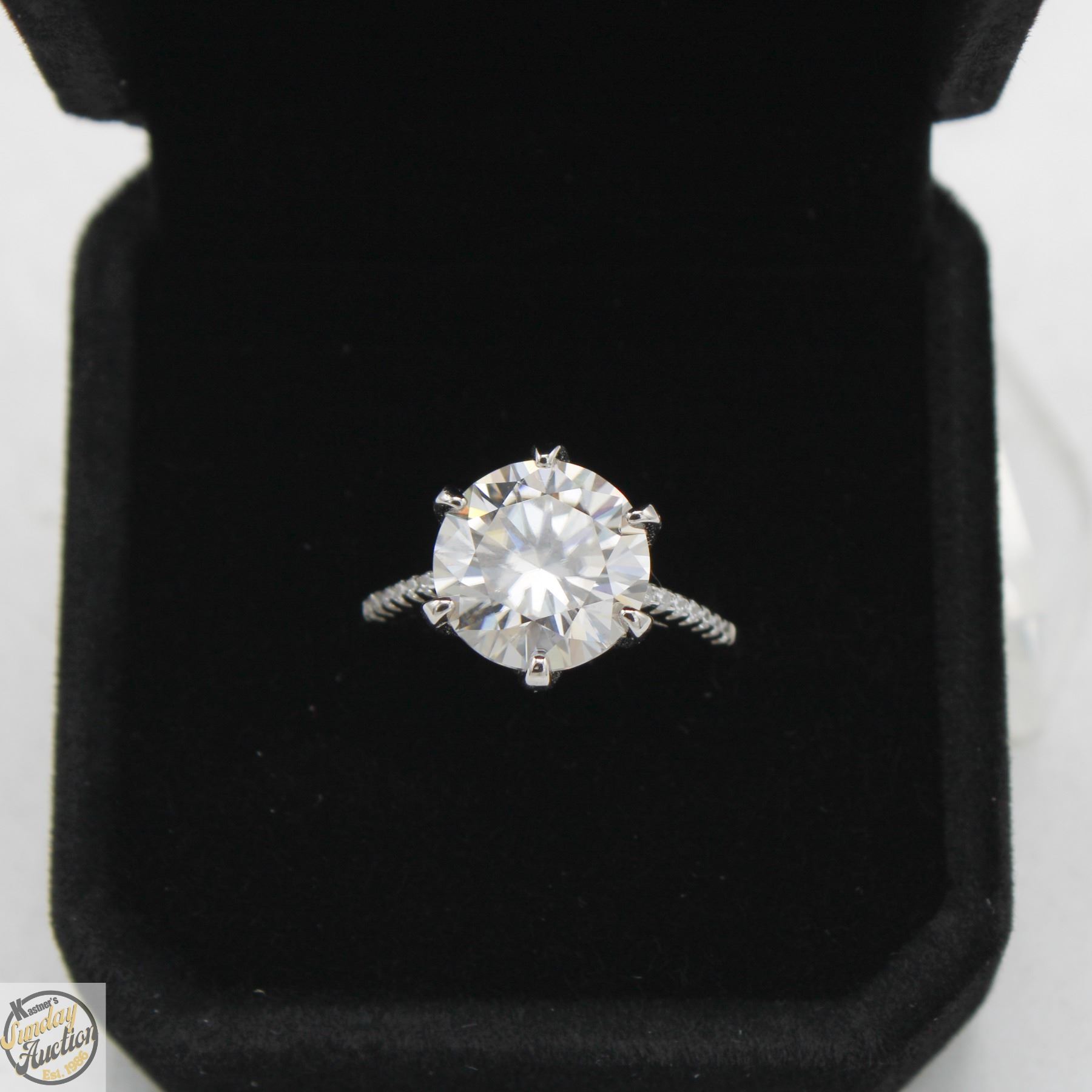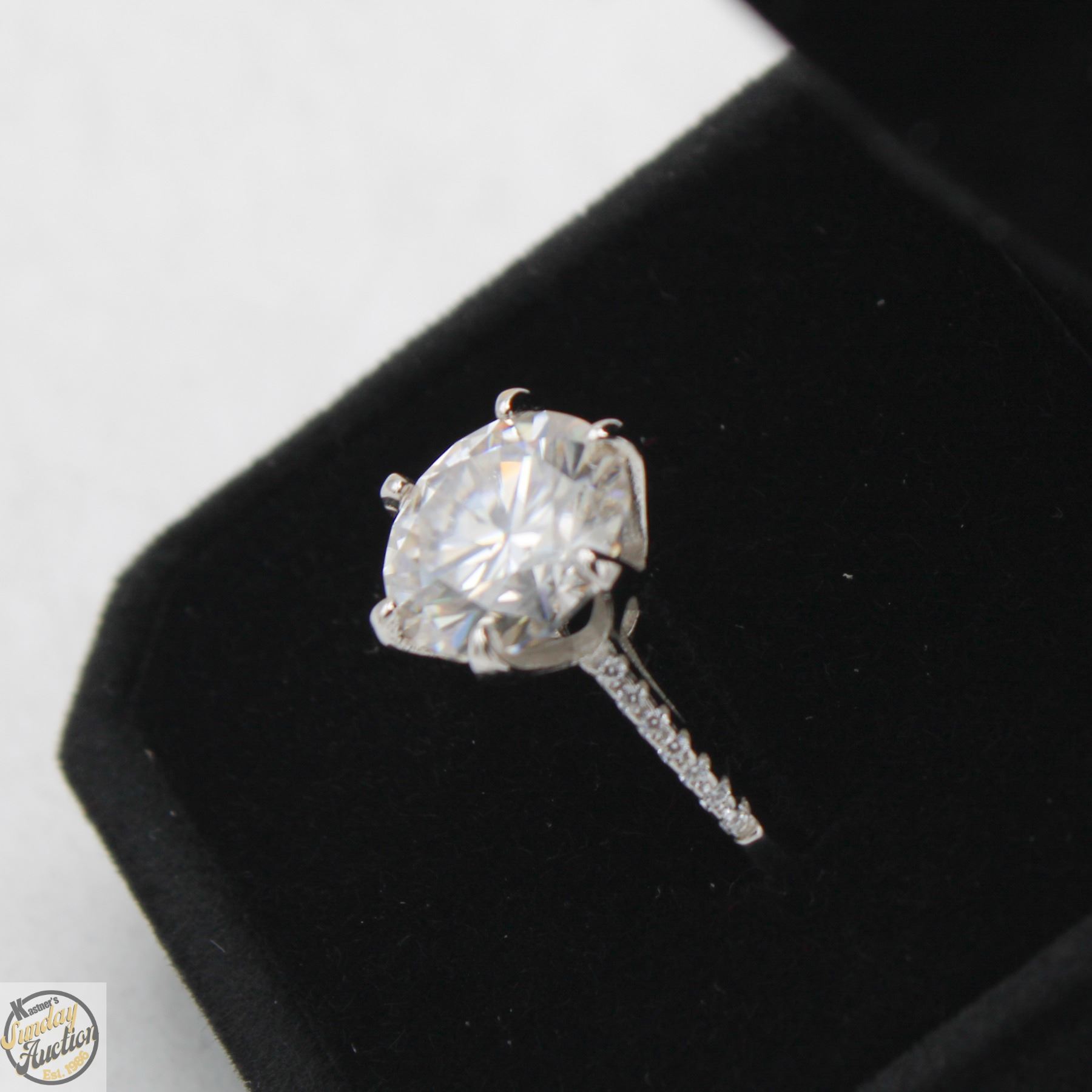MOISSANITE STONE VVS D COLOR SET IN CENTER WITH 14 ROUND BRILLIANT CUT CUBIC ZIRCONIA AND SET IN SHANKS SET IN 925 SILVER RING SIZE 7 RETAIL VALUE $1,450.00 **ALL ITEMS MUST BE REMOVED BY 5PM SATURDAY, DECEMBER 20TH 2025. ALL REMAINING ITEMS WILL BE SUBJECT TO A $6.00 PER DAY STORAGE CHARGE. ANY ITEMS REMAINING AFTER MONDAY, JANUARY 5TH 2026 WILL BE CONSIDERED FORFEITED. NO REFUNDS WILL BE ISSUED FOR FORFEITED ITEMS. TO SCHEDULE A PICK UP APPOINTMENT CLICK HERE