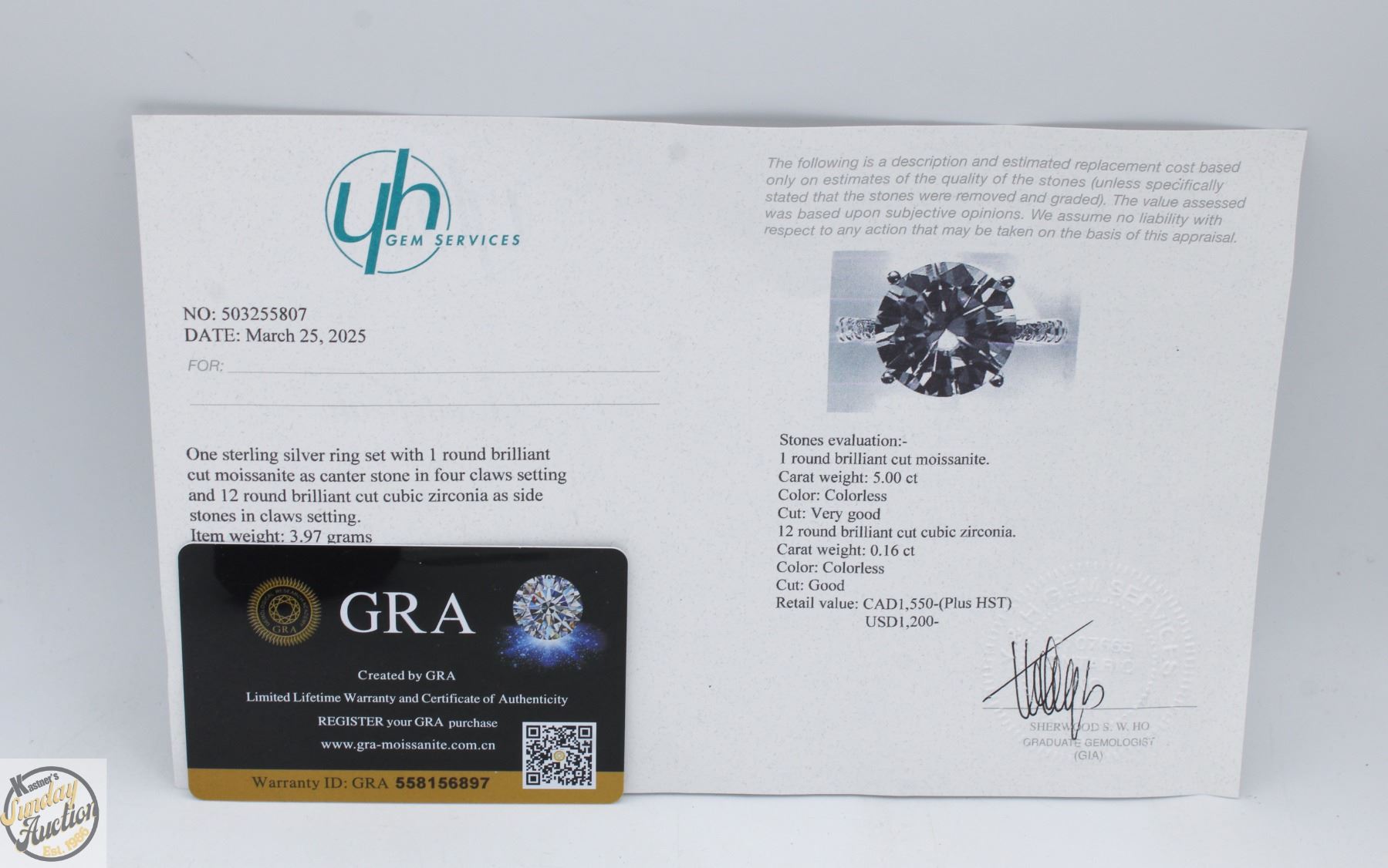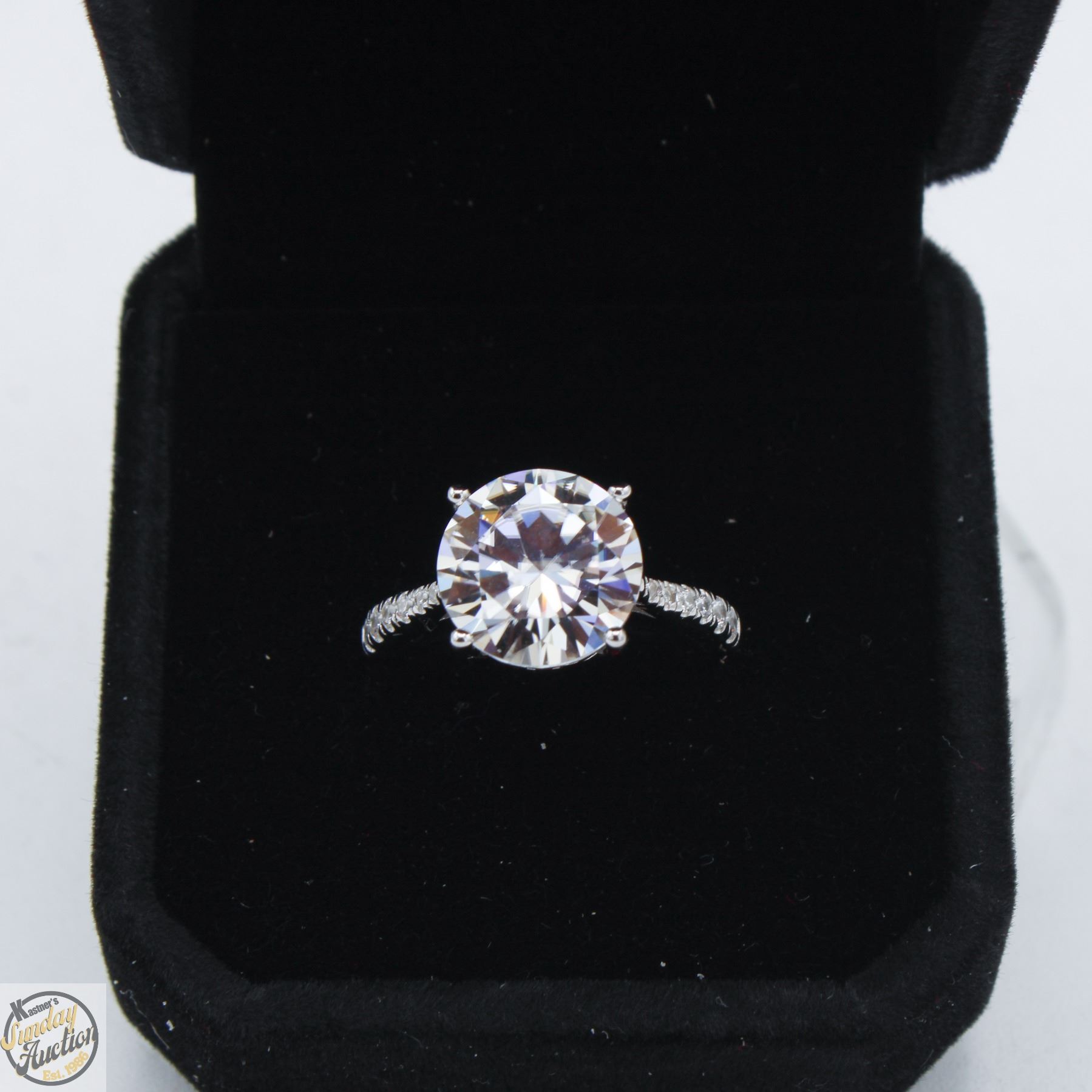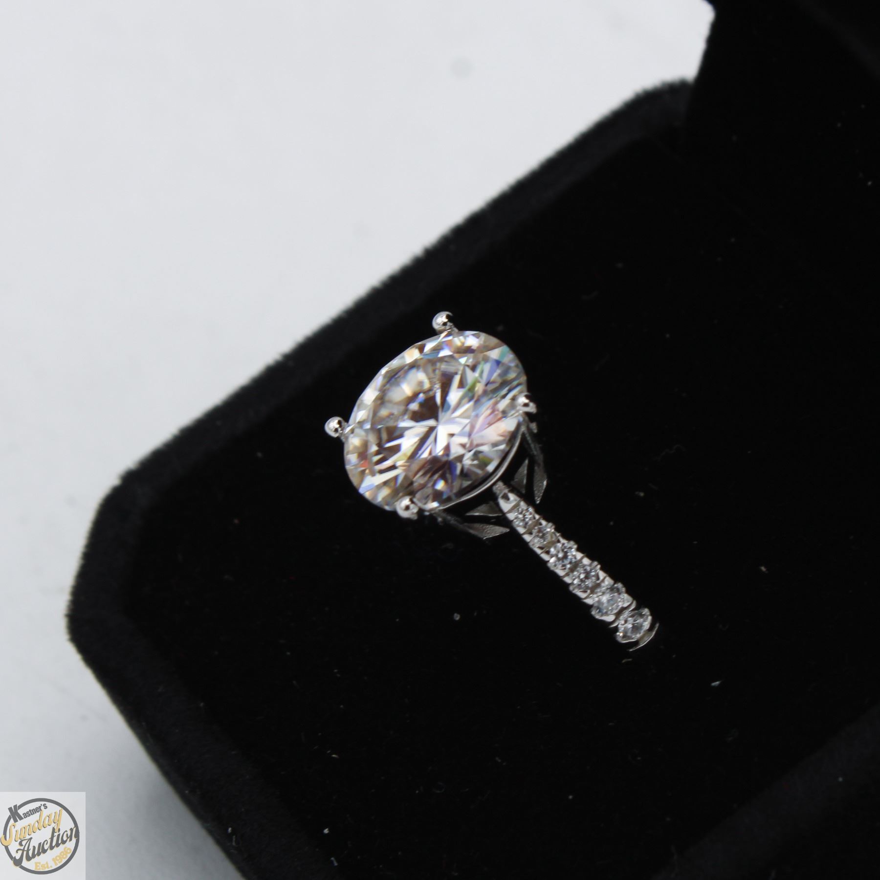 MOISSANITE STONE VVS D COLOR SET IN CENTER WITH 12 ROUND BRILLIANT CUT CUBIC ZIRCONIA AND SET IN SHANKS SET IN 925 SILVER RING SIZE 6.5 RETAIL VALUE $1,550.00 **ALL ITEMS MUST BE REMOVED BY 5PM SATURDAY, DECEMBER 20TH 2025. ALL REMAINING ITEMS WILL BE SUBJECT TO A $6.00 PER DAY STORAGE CHARGE. ANY ITEMS REMAINING AFTER MONDAY, JANUARY 5TH 2026 WILL BE CONSIDERED FORFEITED. NO REFUNDS WILL BE ISSUED FOR FORFEITED ITEMS. TO SCHEDULE A PICK UP APPOINTMENT CLICK HERE