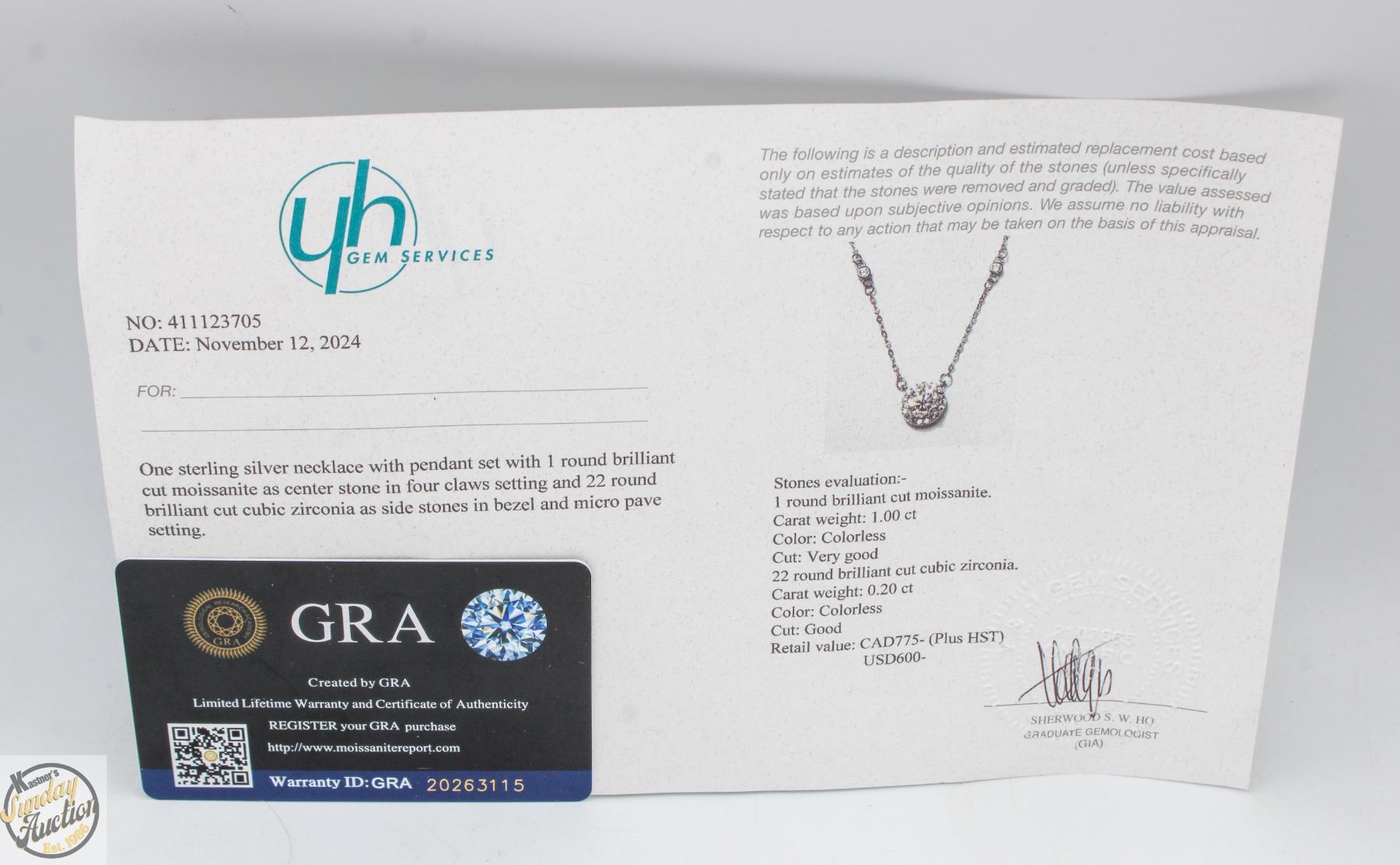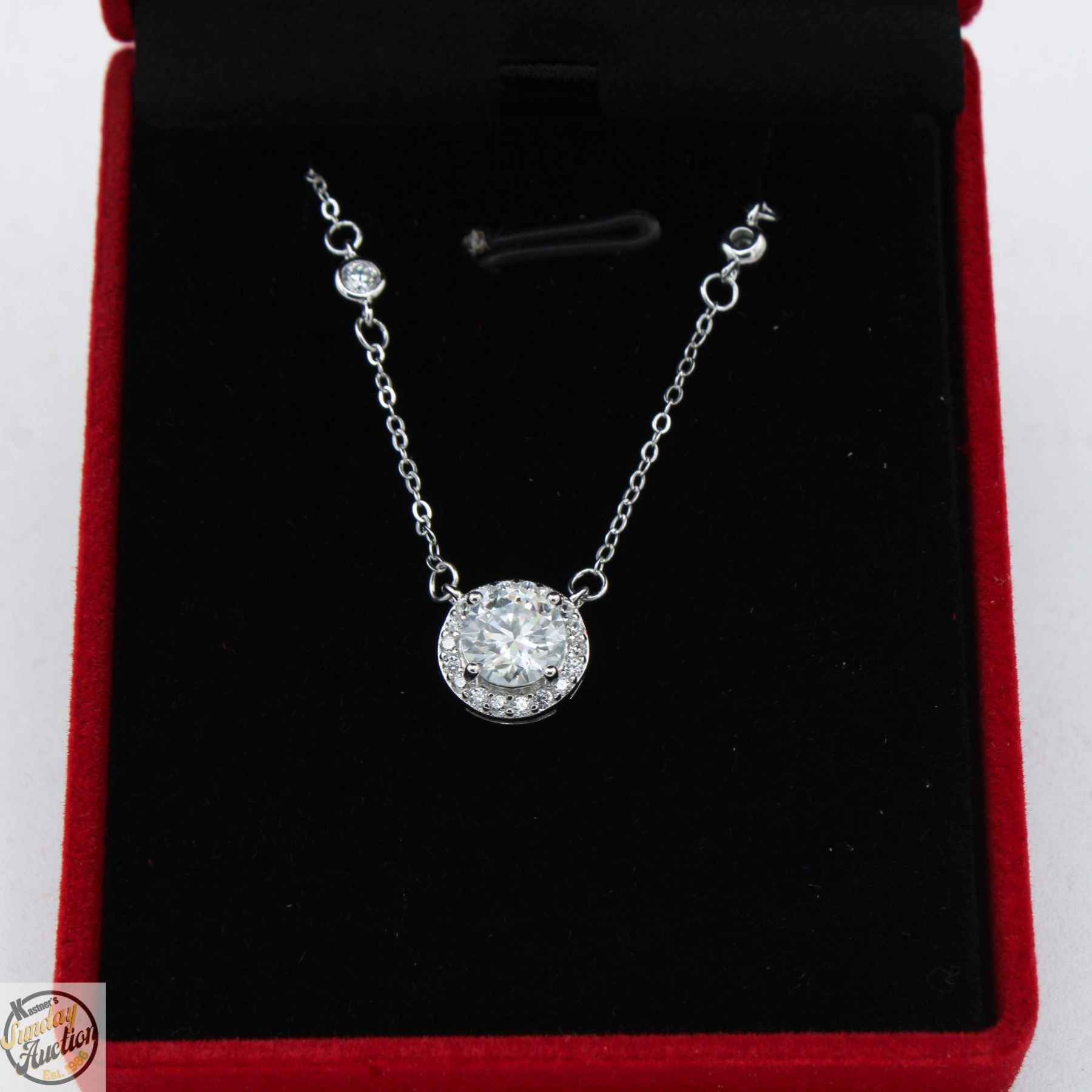 MOISSANITE STONE VVS D COLOR WITH 22 ROUND BRILLIANT CUT CUBIC ZIRCONIA SET IN ROUND HALO IN PENDANT AND IN CHAIN SET IN 925 SILVER RETAIL VALUE $775.00 **ALL ITEMS MUST BE REMOVED BY 5PM SATURDAY, DECEMBER 20TH 2025. ALL REMAINING ITEMS WILL BE SUBJECT TO A $6.00 PER DAY STORAGE CHARGE. ANY ITEMS REMAINING AFTER MONDAY, JANUARY 5TH 2026 WILL BE CONSIDERED FORFEITED. NO REFUNDS WILL BE ISSUED FOR FORFEITED ITEMS. TO SCHEDULE A PICK UP APPOINTMENT CLICK HERE